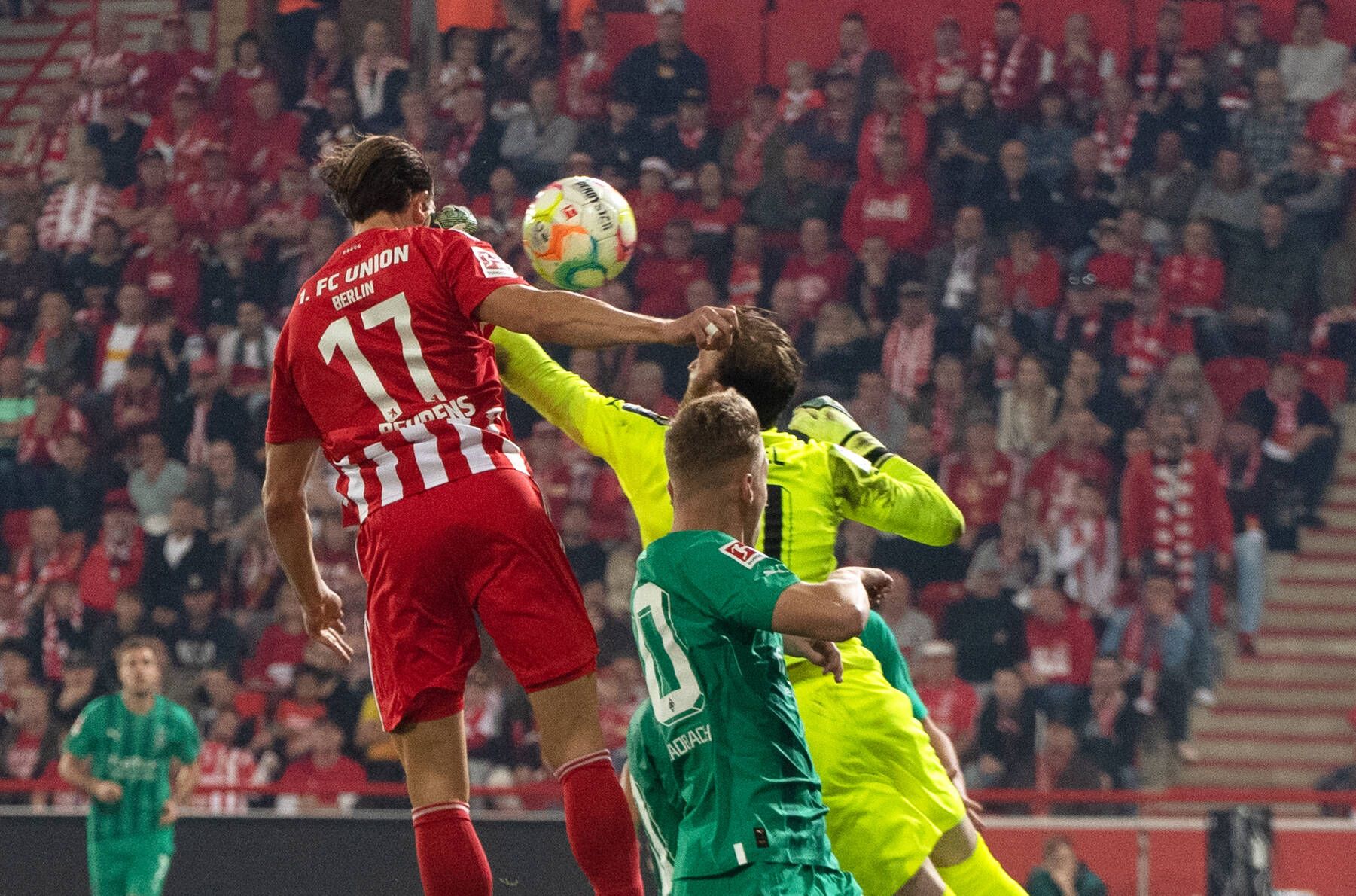 Beherns (l.) kassiert beim Ausgleich die Faust des Keepers, bleibt aber unverletzt.