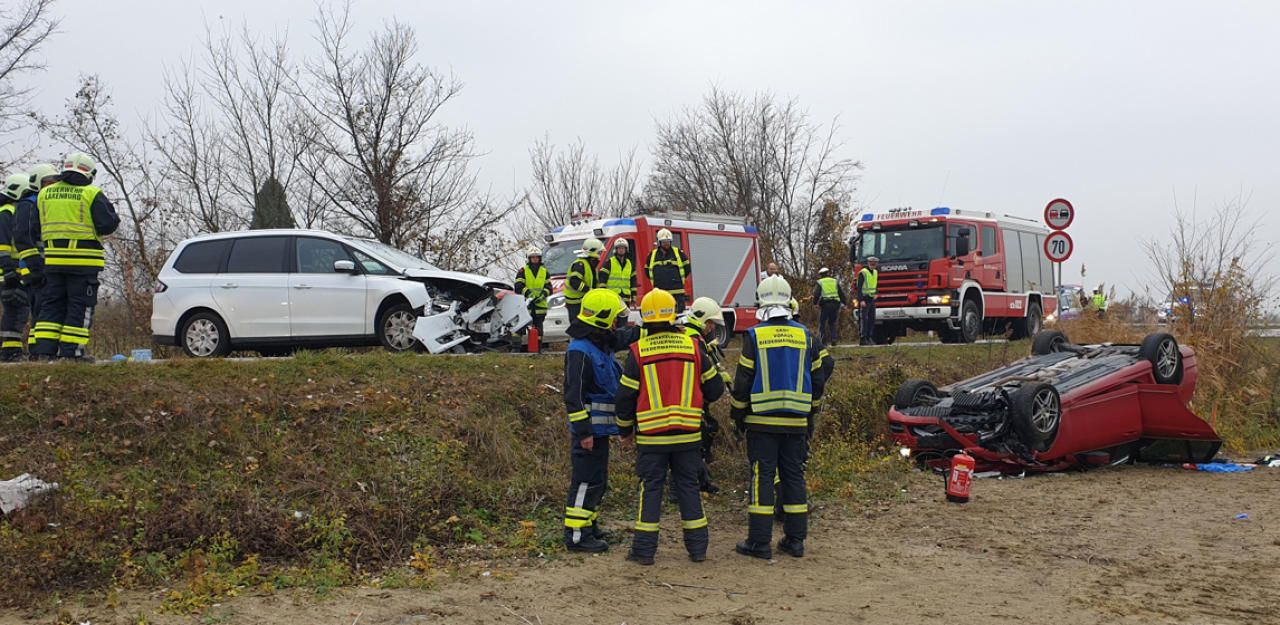 Eines der beiden Auto landete am Dach.