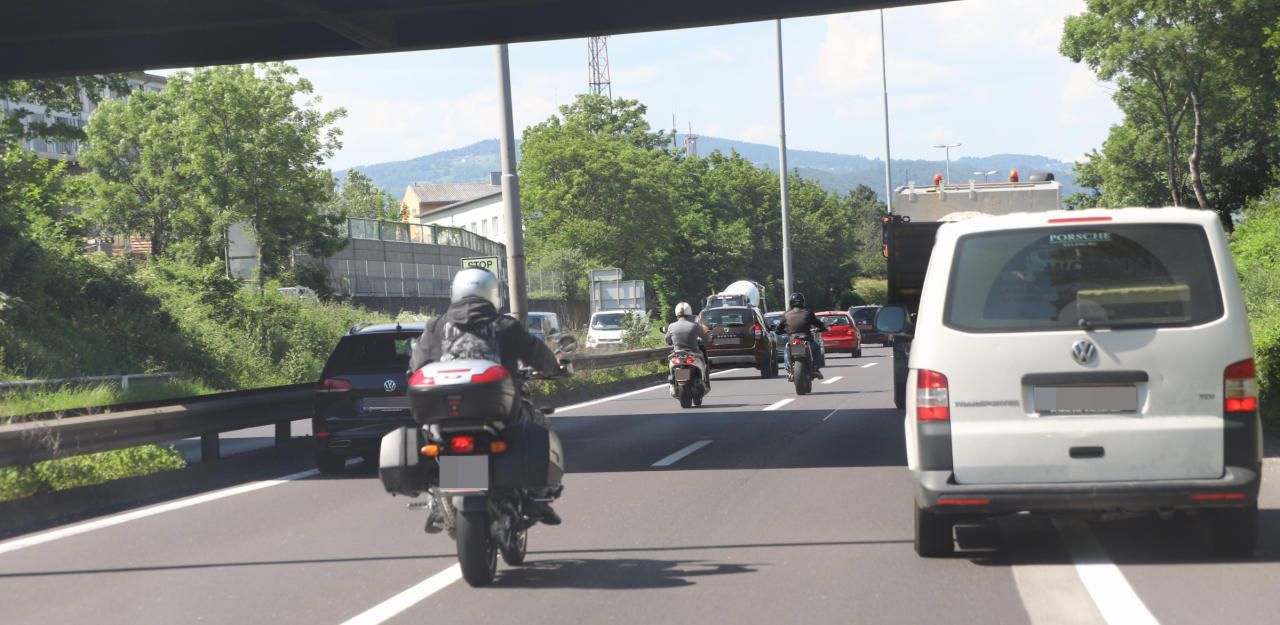 Das Foto zeigt, wie die Biker einfach dreist durch die Rettungsgasse fahren.