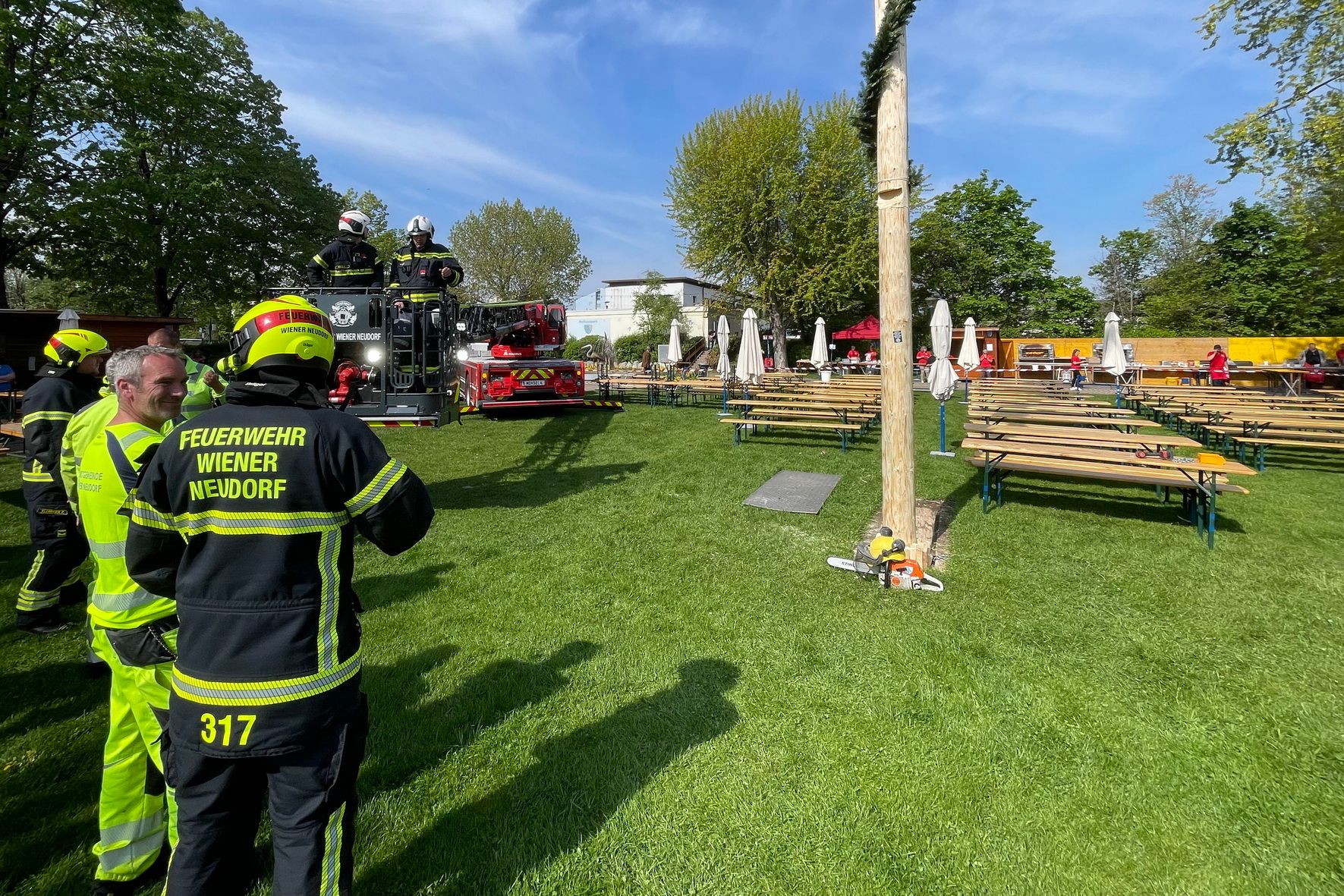 Aus Sicherheitsgründen mussten Feuerwehr und Gemeinde den zuvor aufgestellten Maibaum noch vor dem Fest wieder fällen.