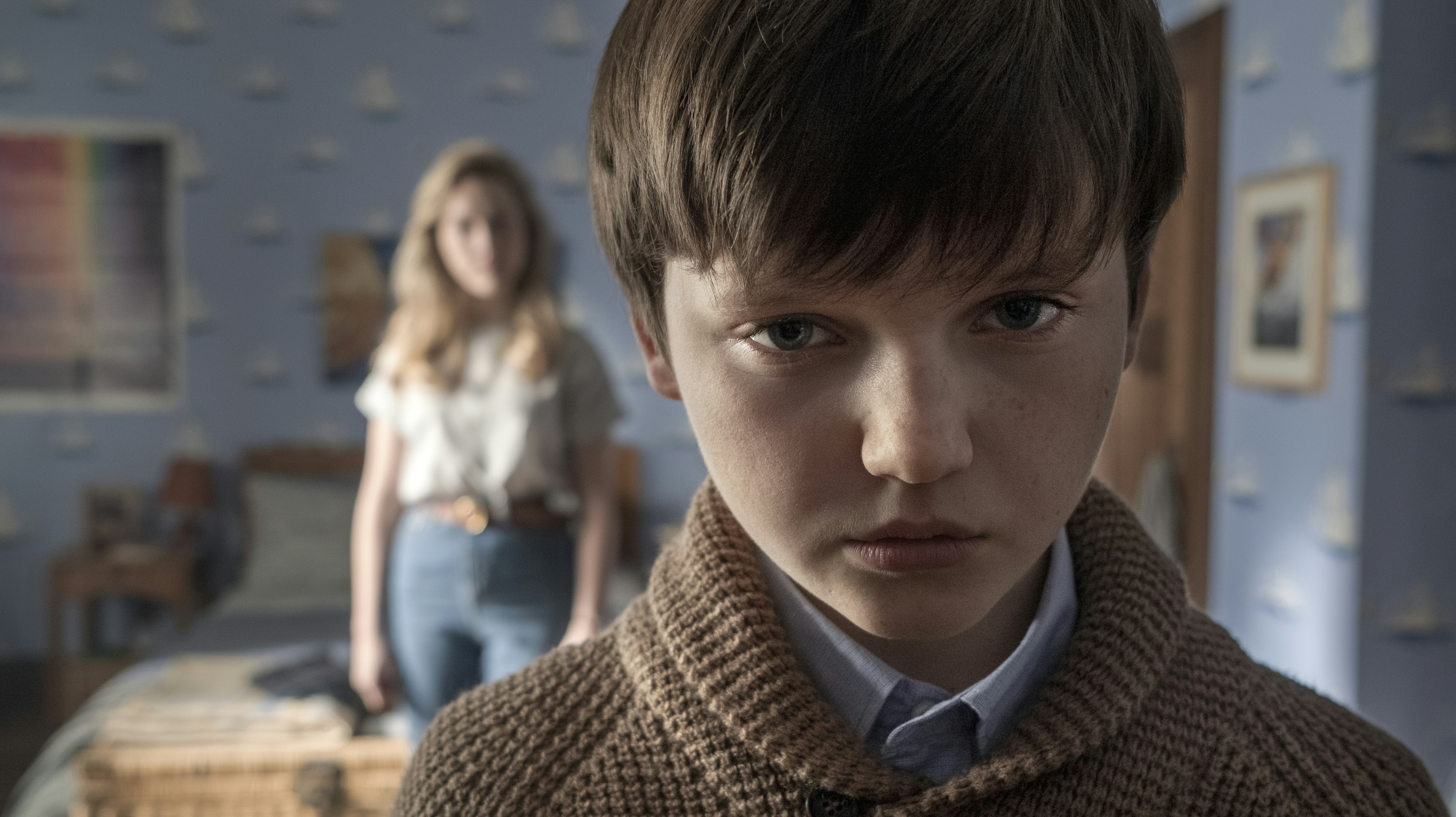 Miles (Benjamin Evan Ainsworth) weiß mehr über das verfluchte Anwesen Bly Manor als er seinem Kindermädchen Dani (Victoria Pedretti) erzählen will.