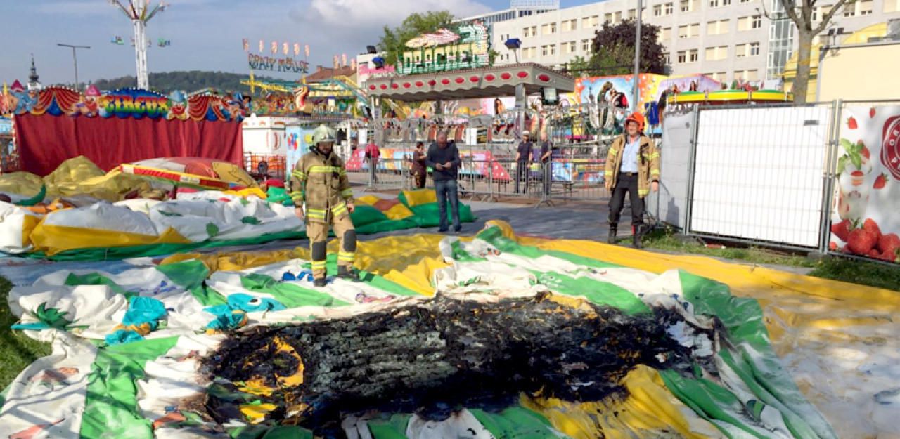 Eine Hüpfburg am Urfahranermarkt geriet Donnerstagvormittag in Brand.