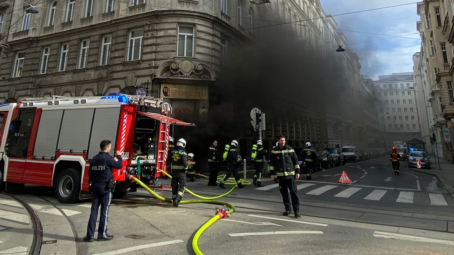 Feuer in einem Lokal am Mittwoch (21.2.) in der Kaiserstraße bei der Stollgasse in Wien-Neubau.