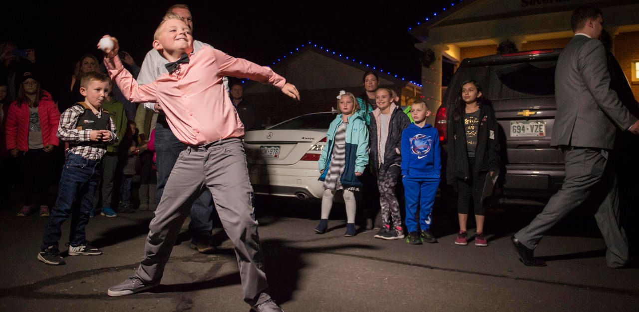 Dane Bast wirft den ersten legalen Schneeball in Severance, Colorado.