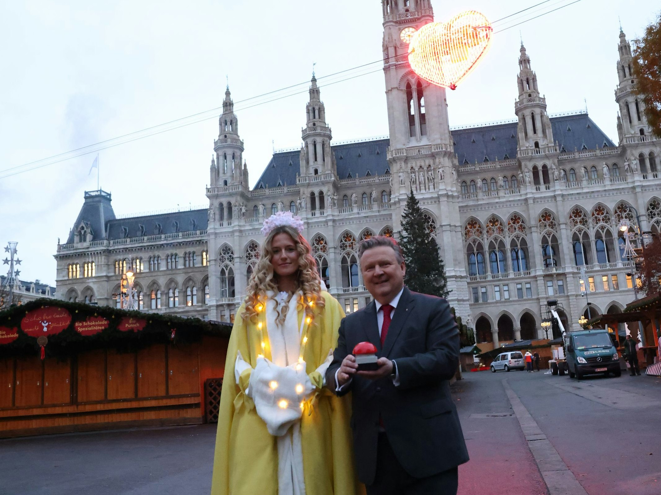 Teamwork: Gemeinsam mit dem diesjährigen Christkindl präsentierte Bürgermeister Michael Ludwig (SP) die neue Attraktion am Rathausplatz