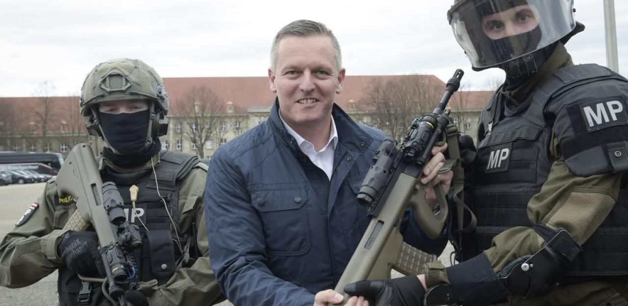 Mario Kunasek bei der Übergabe neuer Sturmgewehre im April 2018
