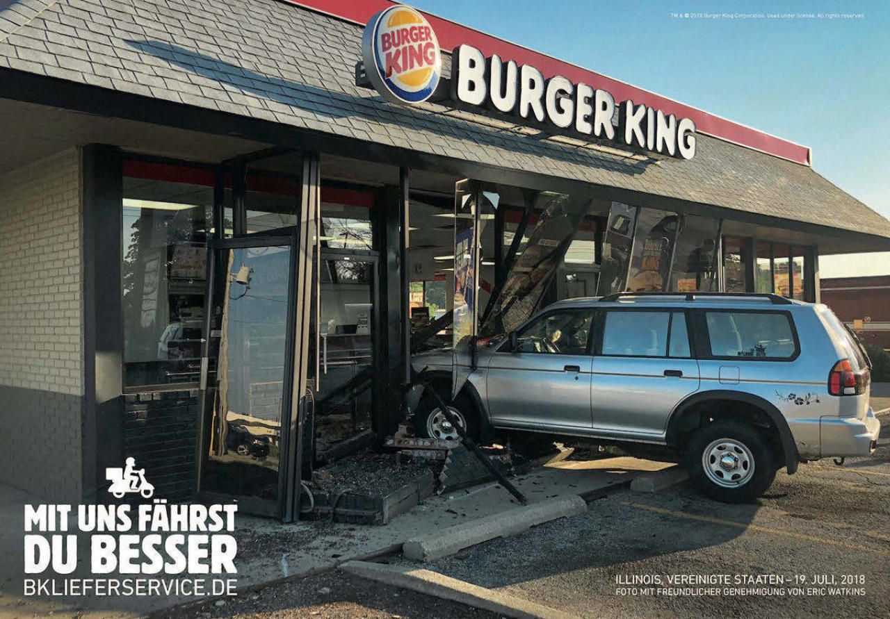 Mit Unfällen wie diesem wirbt Burger King in Deutschland für seinen Lieferservice.