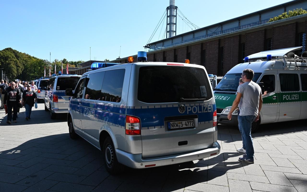 Die Polizei vor dem RheinEnergie Stadion