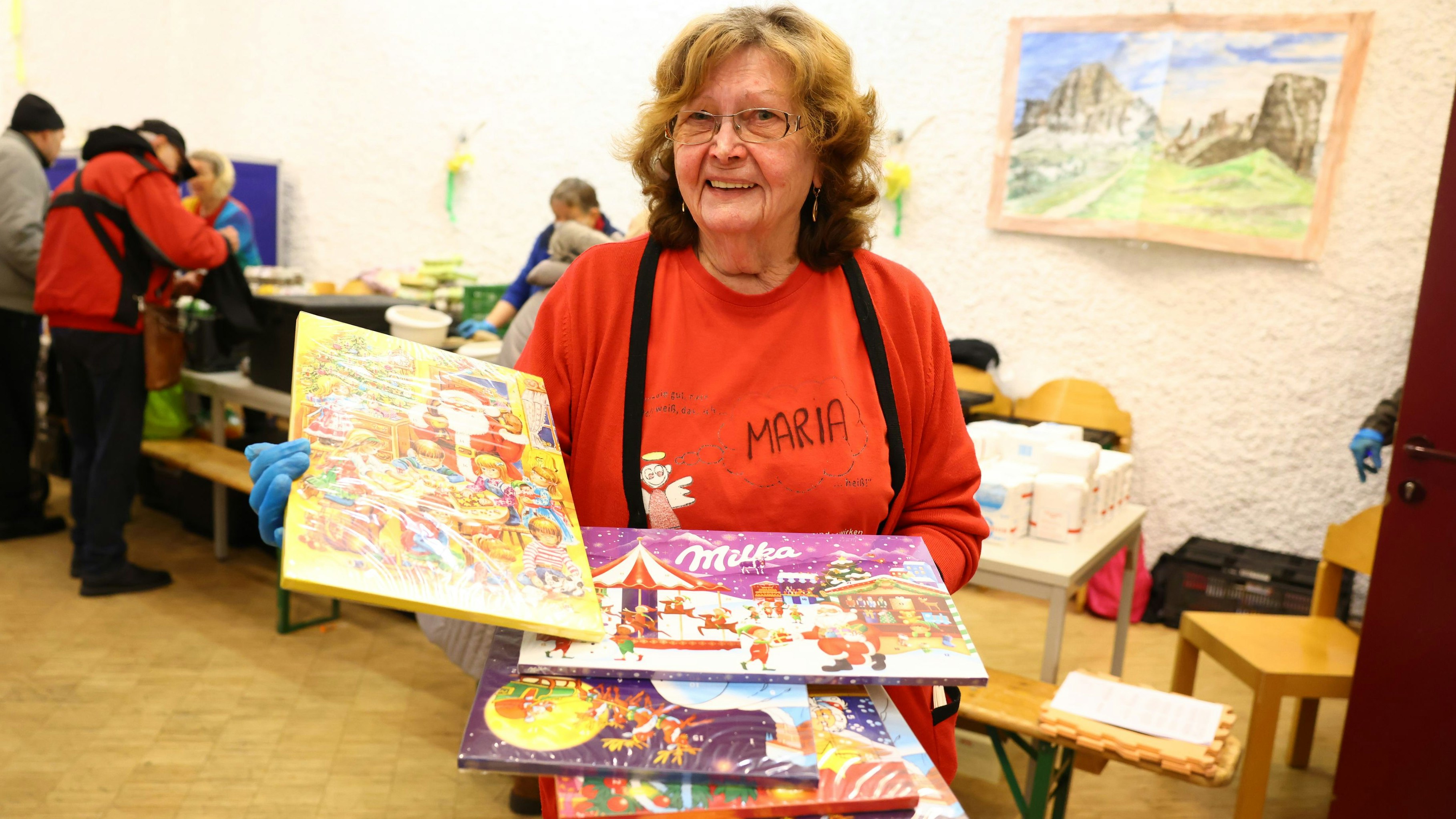 Caritas-Mitarbeiterin Maria verteilte an einem Tag fast 200 Kalender und lässt damit Kinderaugen strahlen.