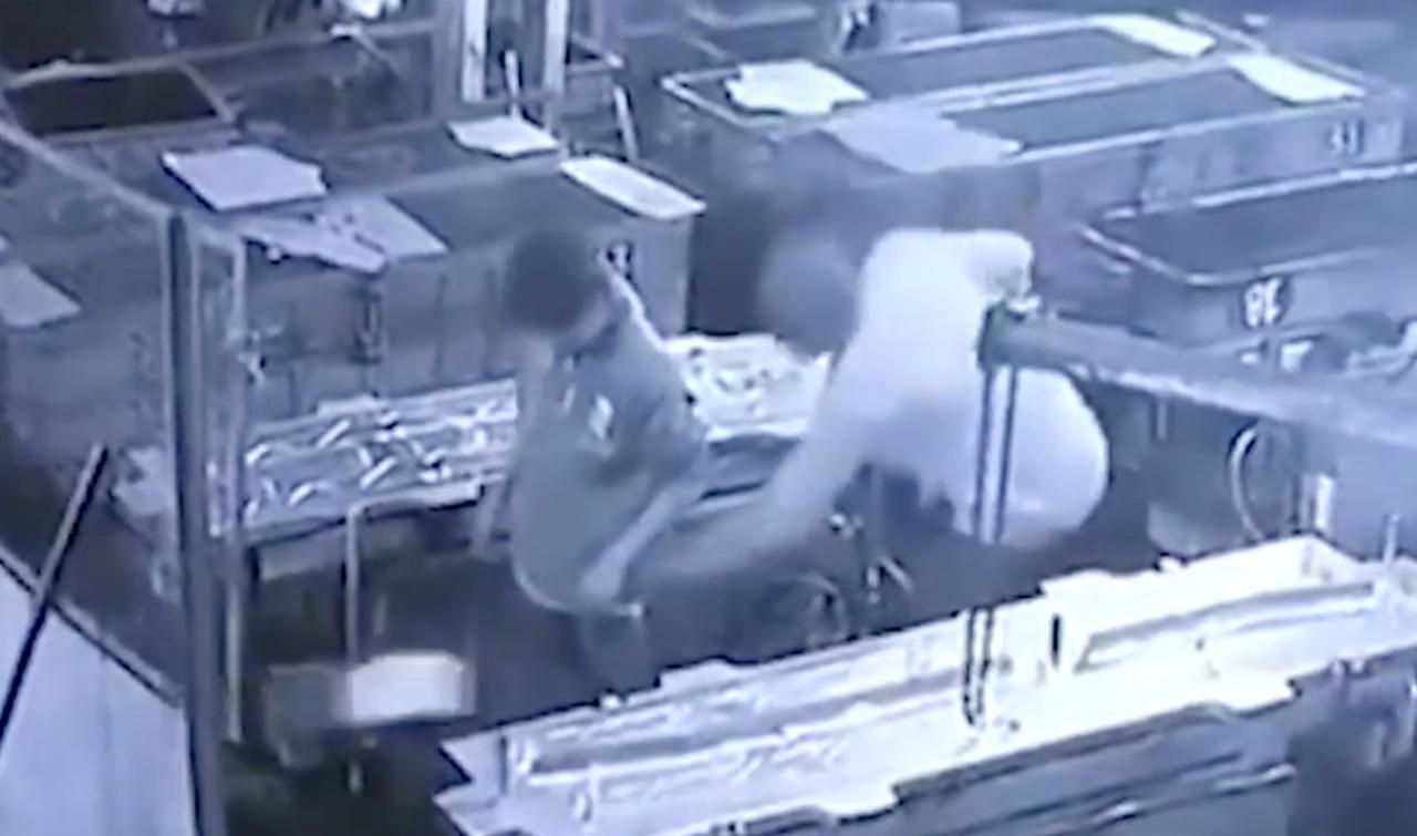 Der Moment der Tragödie: Der Chef hält das Luftdruckgerät an das Hinterteil des Angestellten. 15 Tage später starb er an inneren Verletzungen.