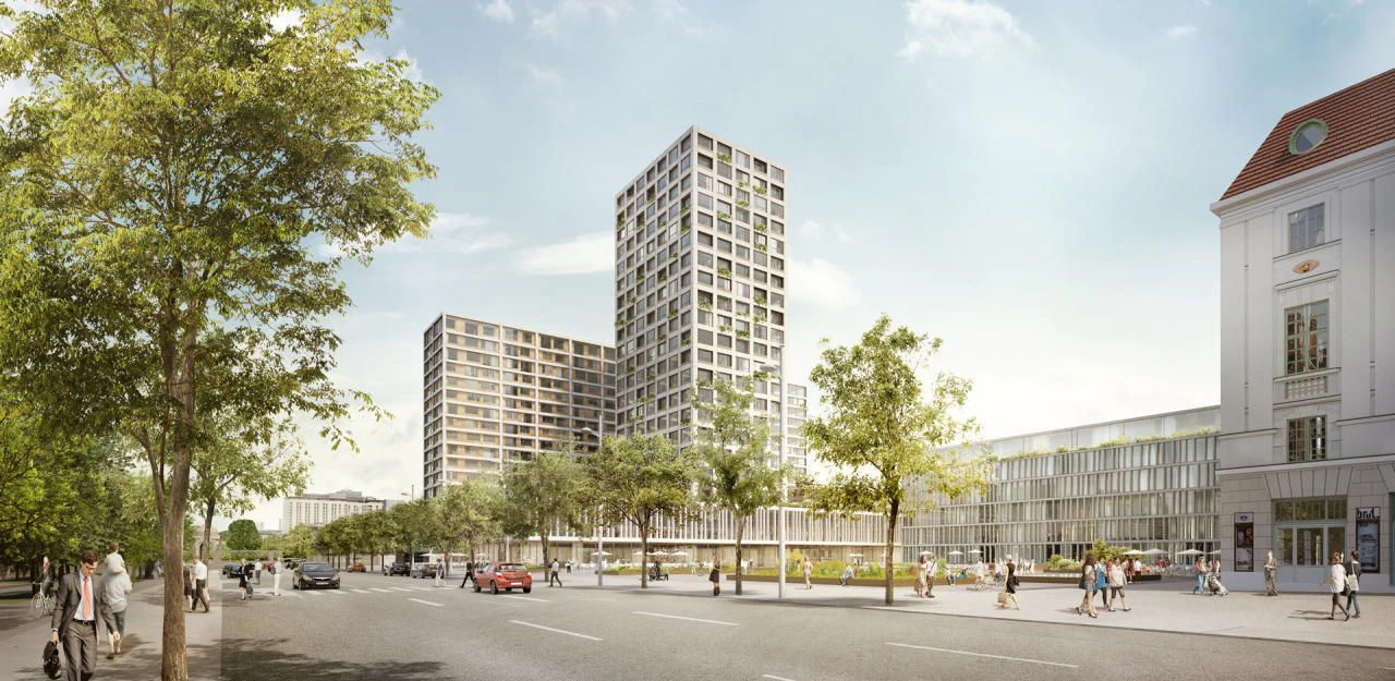 Heumarkt-Areal: So soll das Gelände rund um den Eislaufverin künftig aussehen. Der 66-Meter-Turm ist umstritten. Die Unesco entscheidet in den nächsten Tagen, ob die historische Innenstadt auf die "Rote Liste" gesetzt wird.