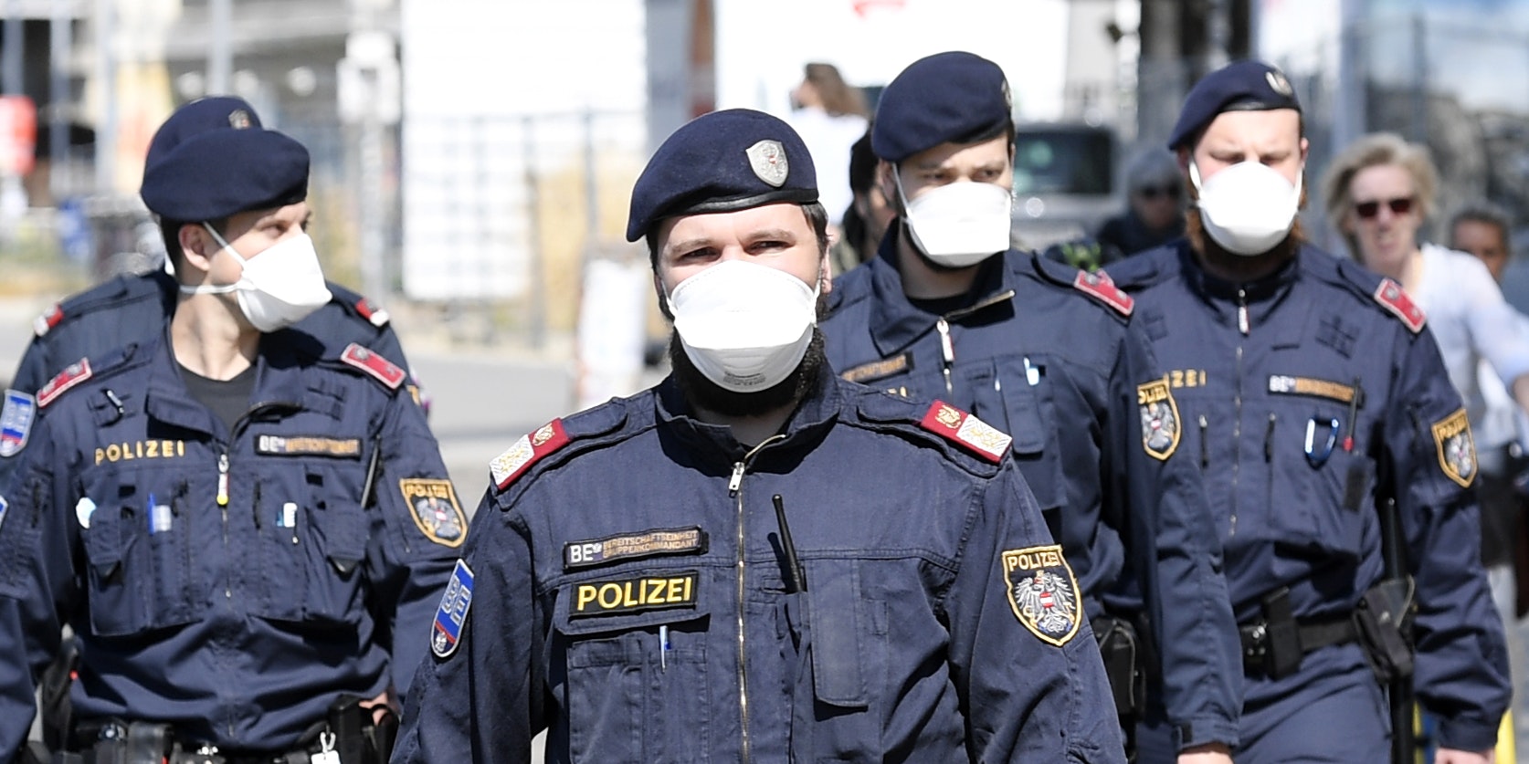 Polizeibeamte der Wiener Bereitschaftseinheit mit Schutzmaske. Symbolbild
