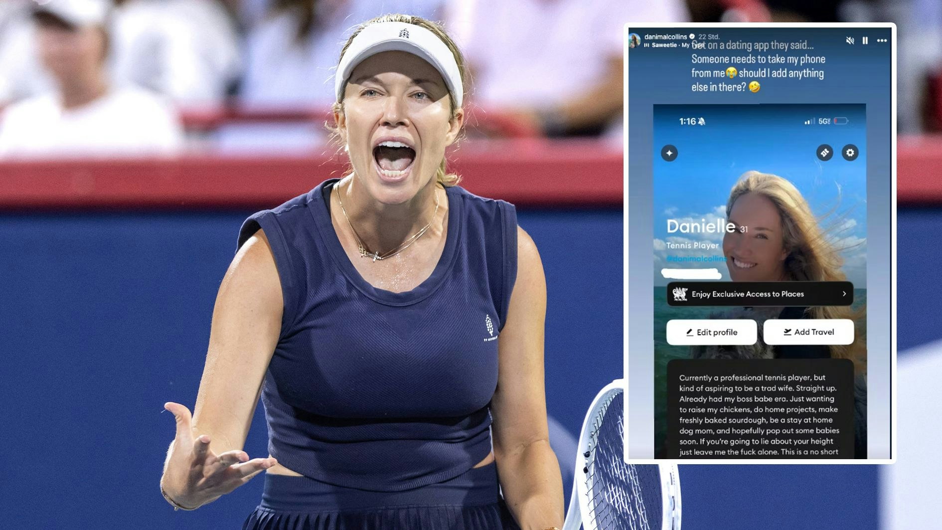 Collins veröffentlichte ihr Dating-Profil in der Instagram-Story.