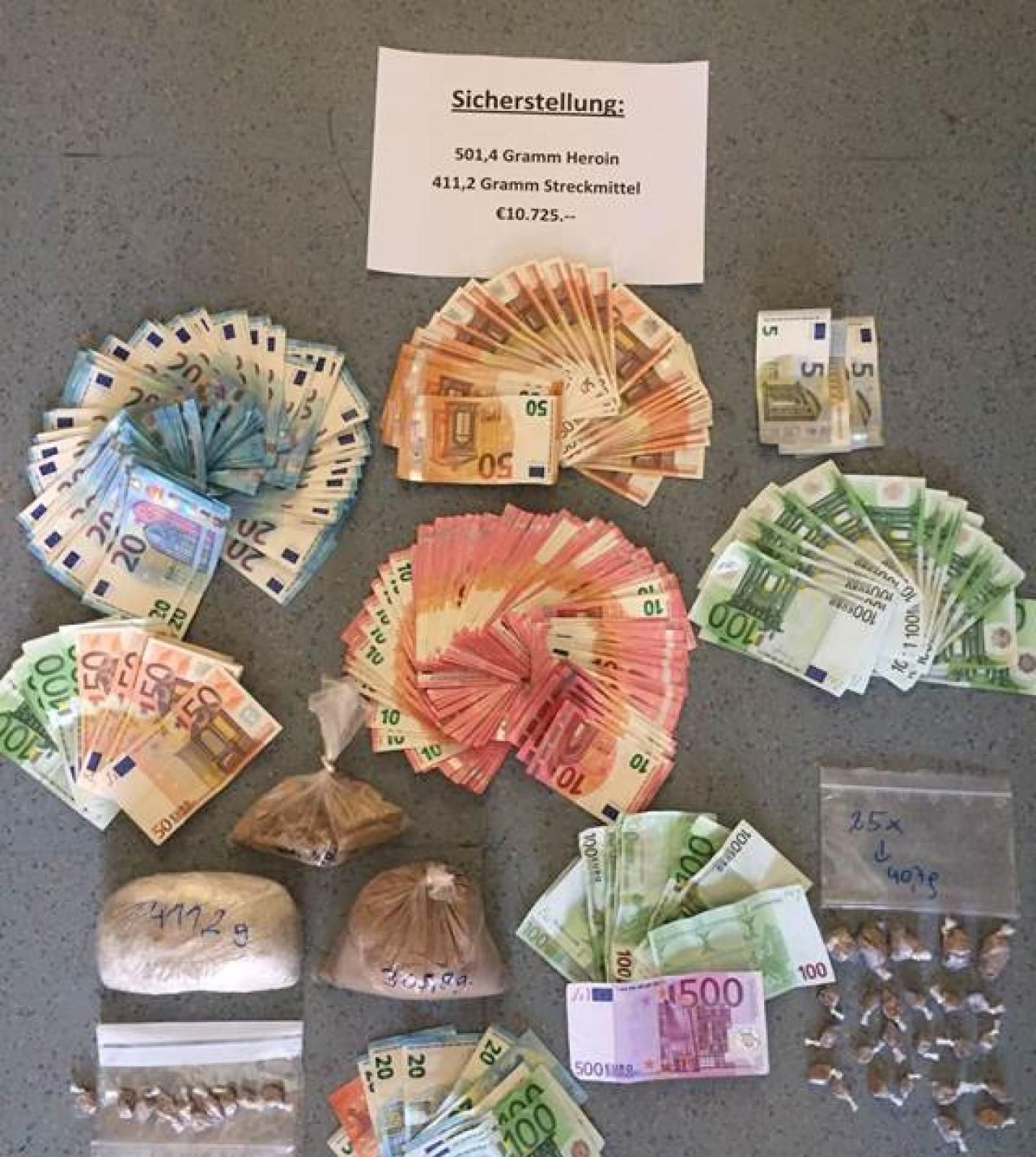 Bei den Verhaftungen kam einiges zusammen: Halbes Kilo Heroin und über zehn Tausend Euro Bargeld.