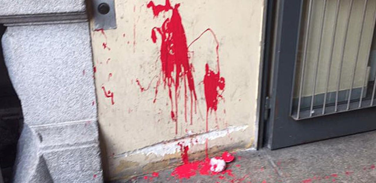 Vermummte warfen bei der Demo gegen den Rechten-Kongress Farbbeutel.