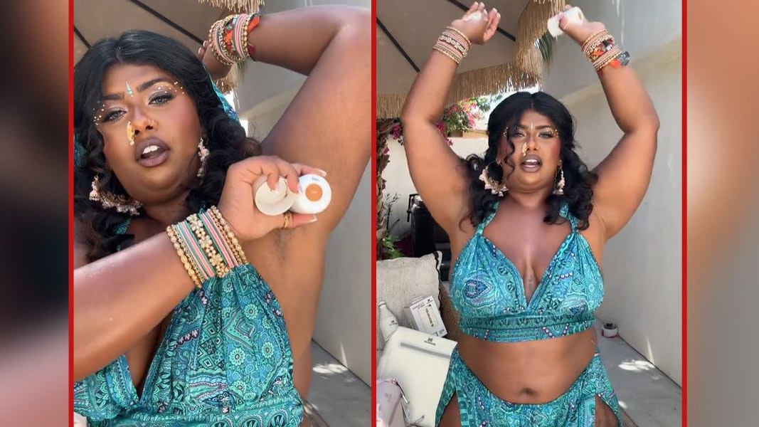 Influencerin Shawty Sin (Bild) zeigt vor, wie das Achsel-Make-up wirkt.