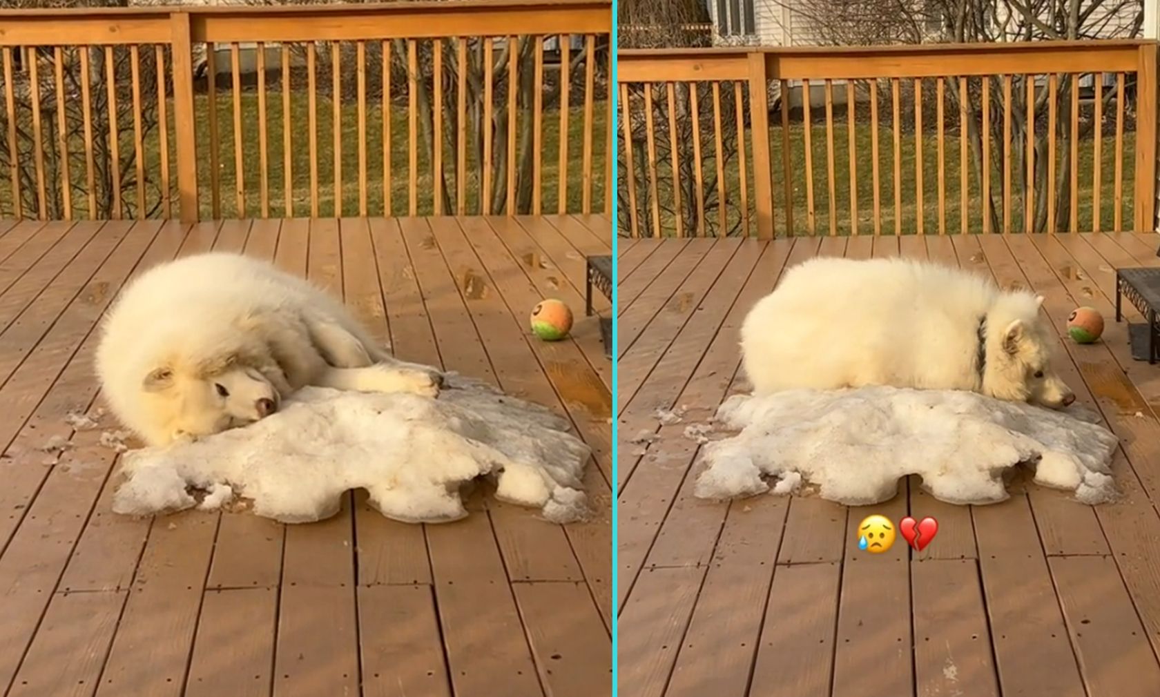 Der Alaskan Malamute verabschiedet sich herzzerreisend vom letzten Schnee.