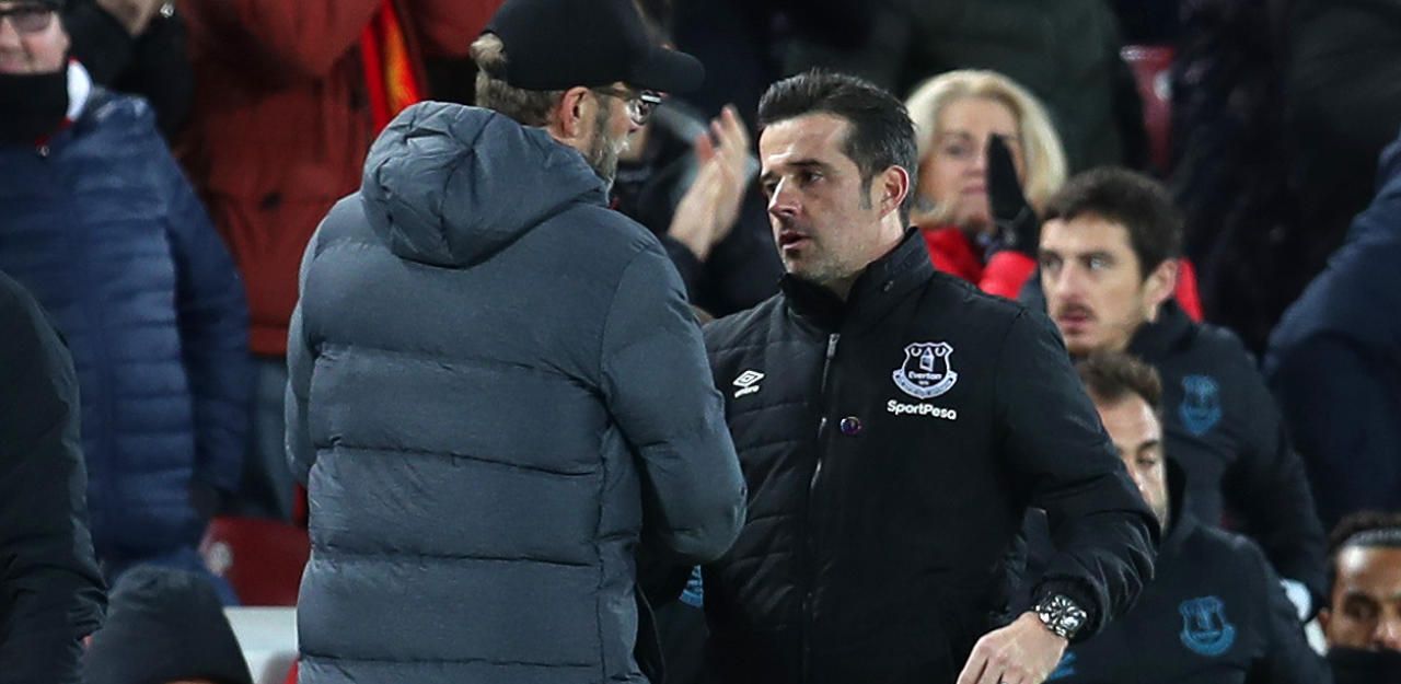 Jürgen Klopp tröstet Marco Silva nach der Derby-Niederlage. Es sollte das letzte Spiel als Everton-Trainer sein.