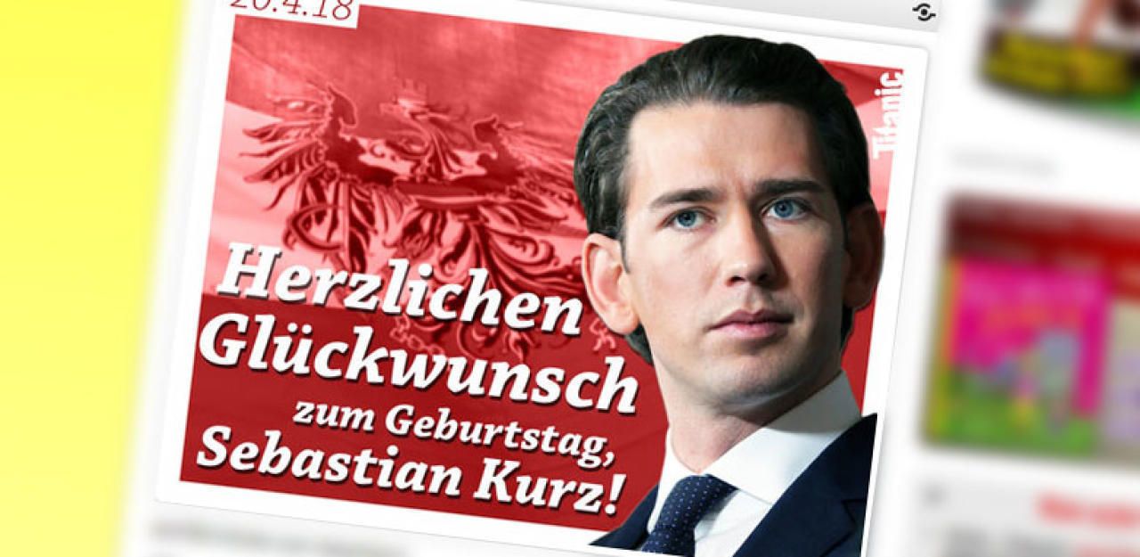 Unter dem Titel "Baby-Hitler lebe hoch!" wünschen Satiriker an Hitlers Geburtstag Kanzler Kurz Glück.