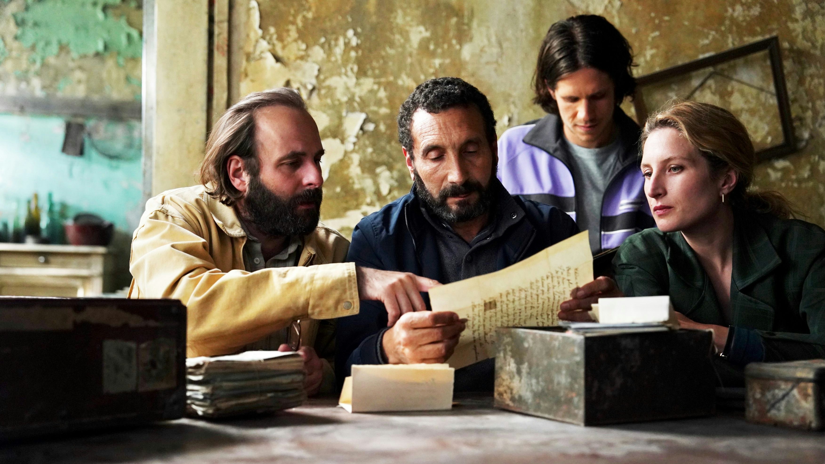 Familienzusammenführung mit Vincent Macaigne, Zinedine Soualem, Abraham Wapler und Julia Piaton (v.l.)