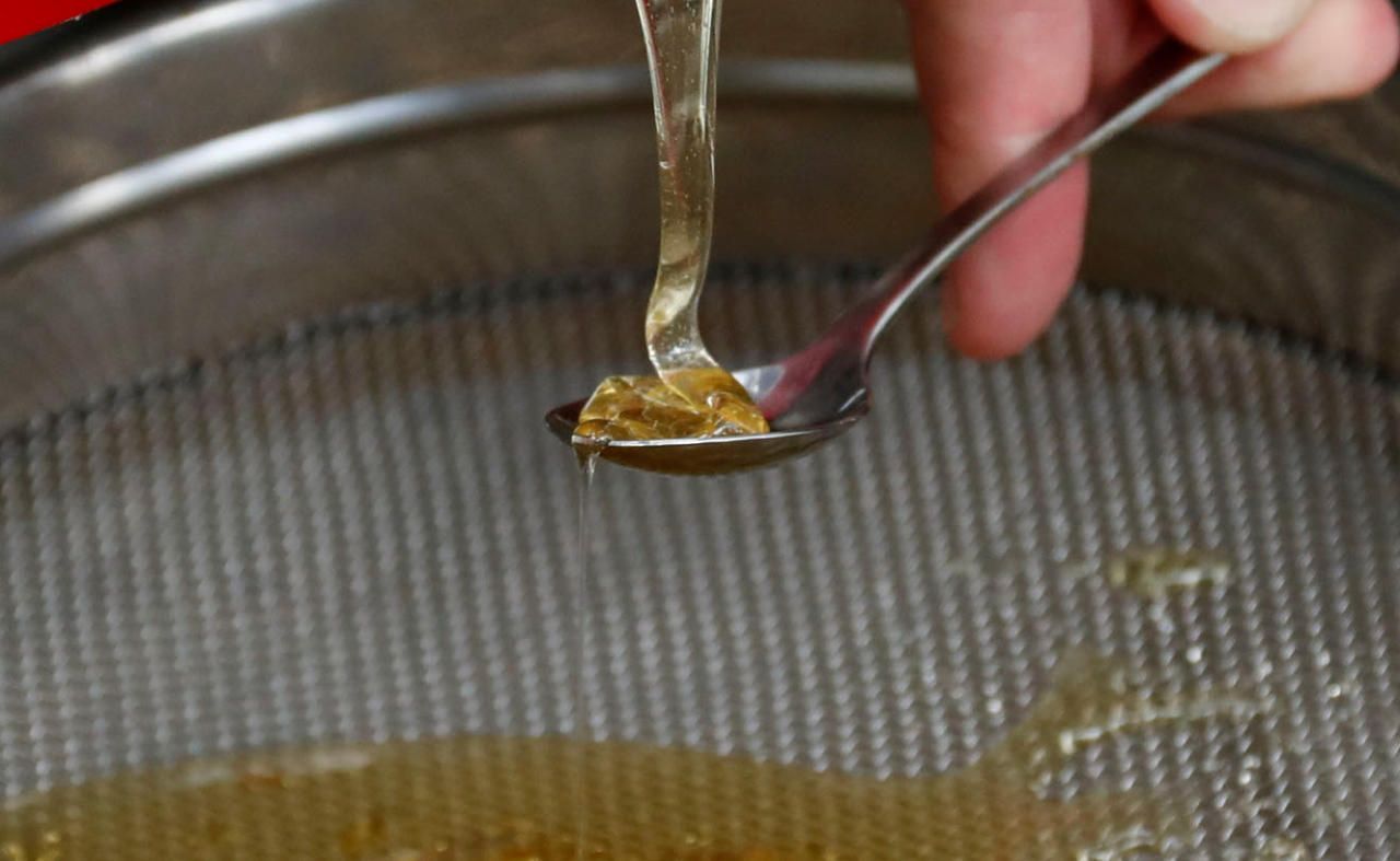 A journalist prepares to taste the harvest of honey from tens of thousands honeybees permanently placed in a courtyard of an office building at the lower house of the German parliament Bundestag in Berlin, Germany, August 23, 2017. REUTERS/Fabrizio Bensch - RC1A2FFBC600