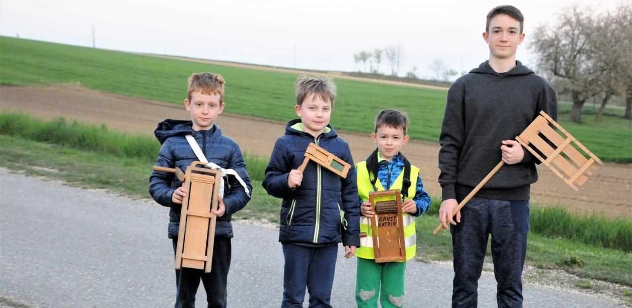 Michael Fitz, Gregor Puchner, Daniel und Berhard Staribacher aus dem Wildpark-Dorf Dörfles in den Leiserbergen.