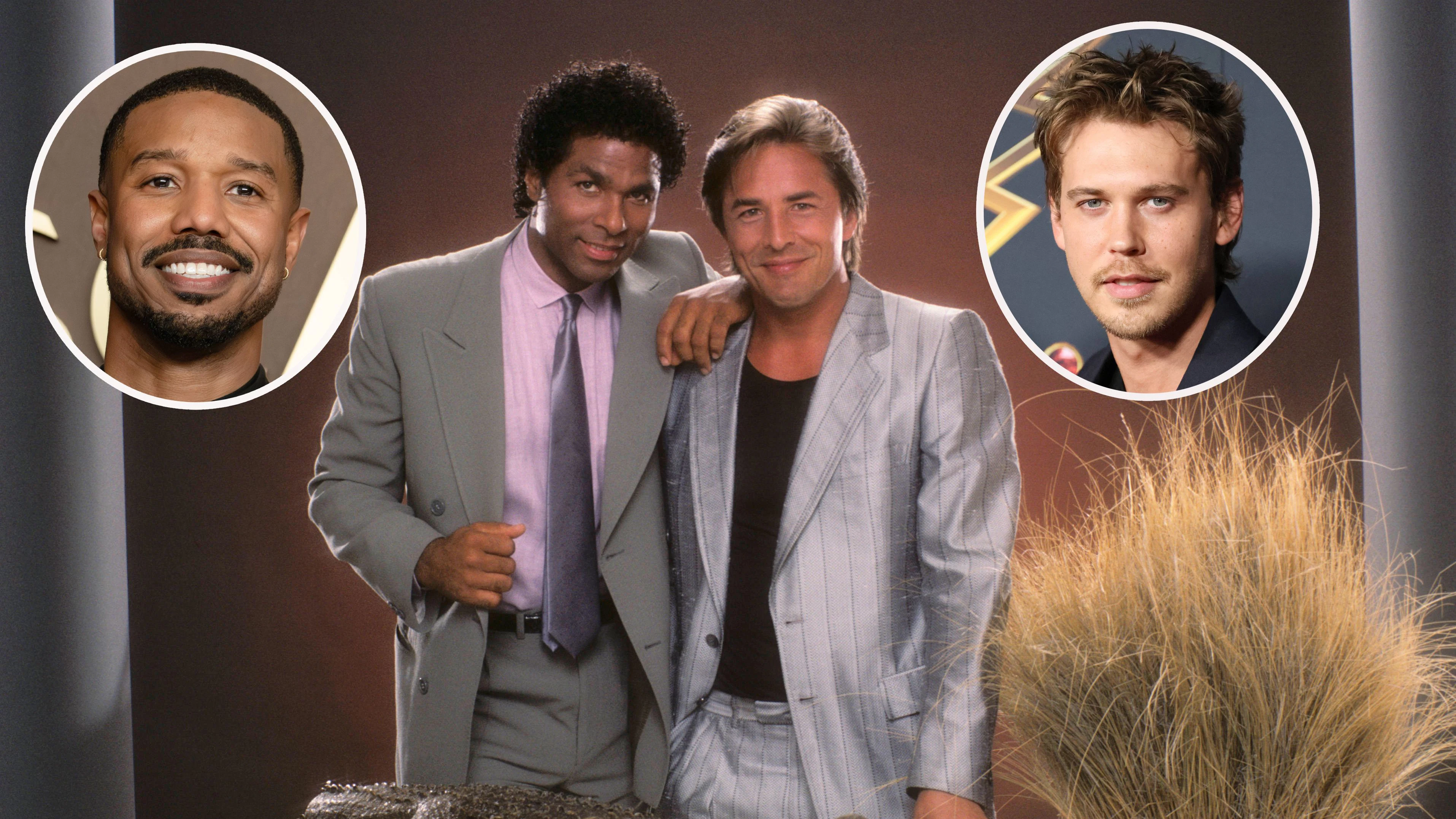 Sie galten als coolste TV-Detektive der 80er Jahre: Philip Michael Thomas und Don Johnson (M., v.l.) in "Miami Vice". Nun kommt eine Neuauflage mit Michael B. Jordan (l.) und Austin Butler (r.) ins Kino.