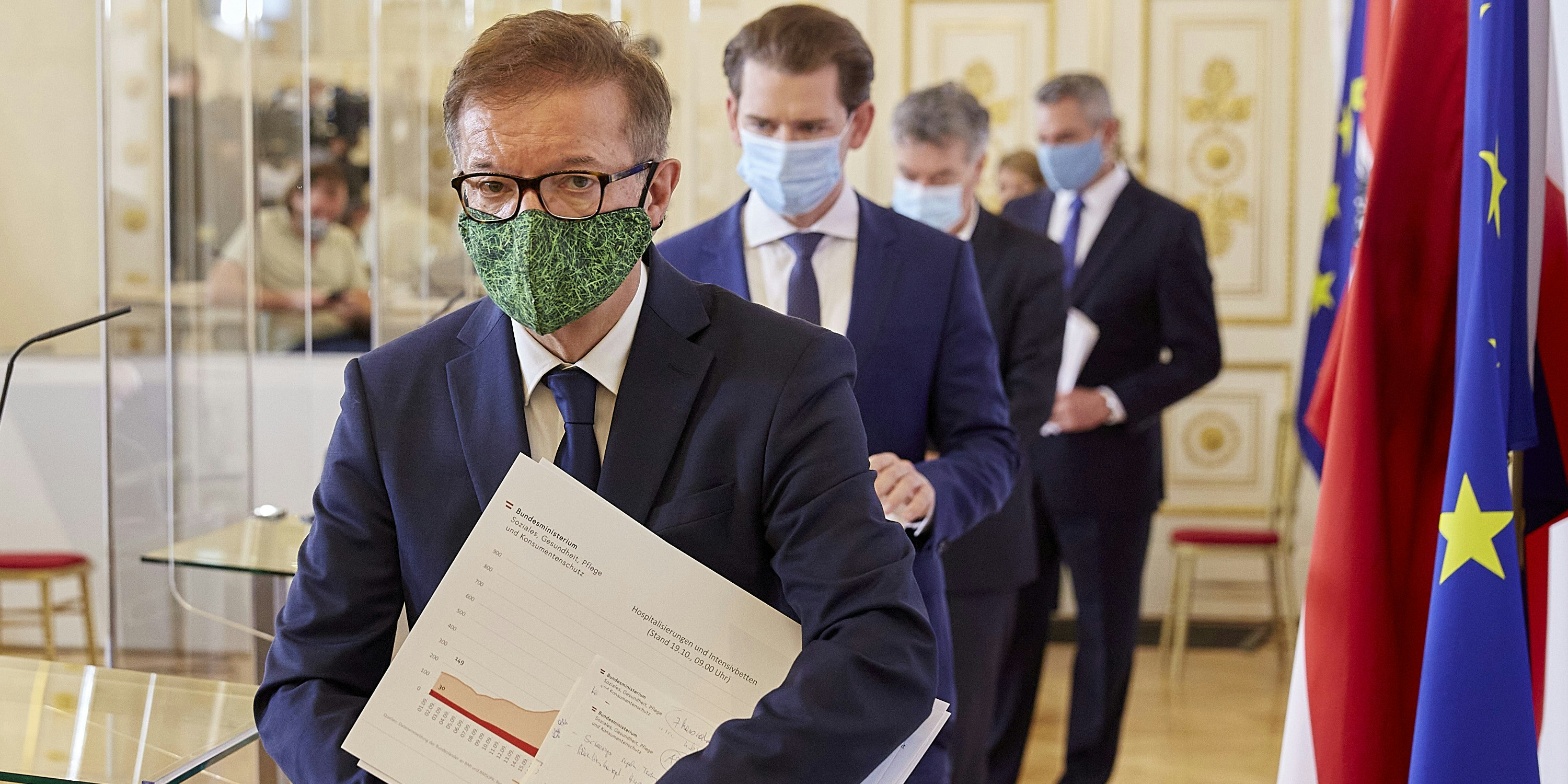 Anschober, Kurz, Kogler, Nehammer nach Sitzung