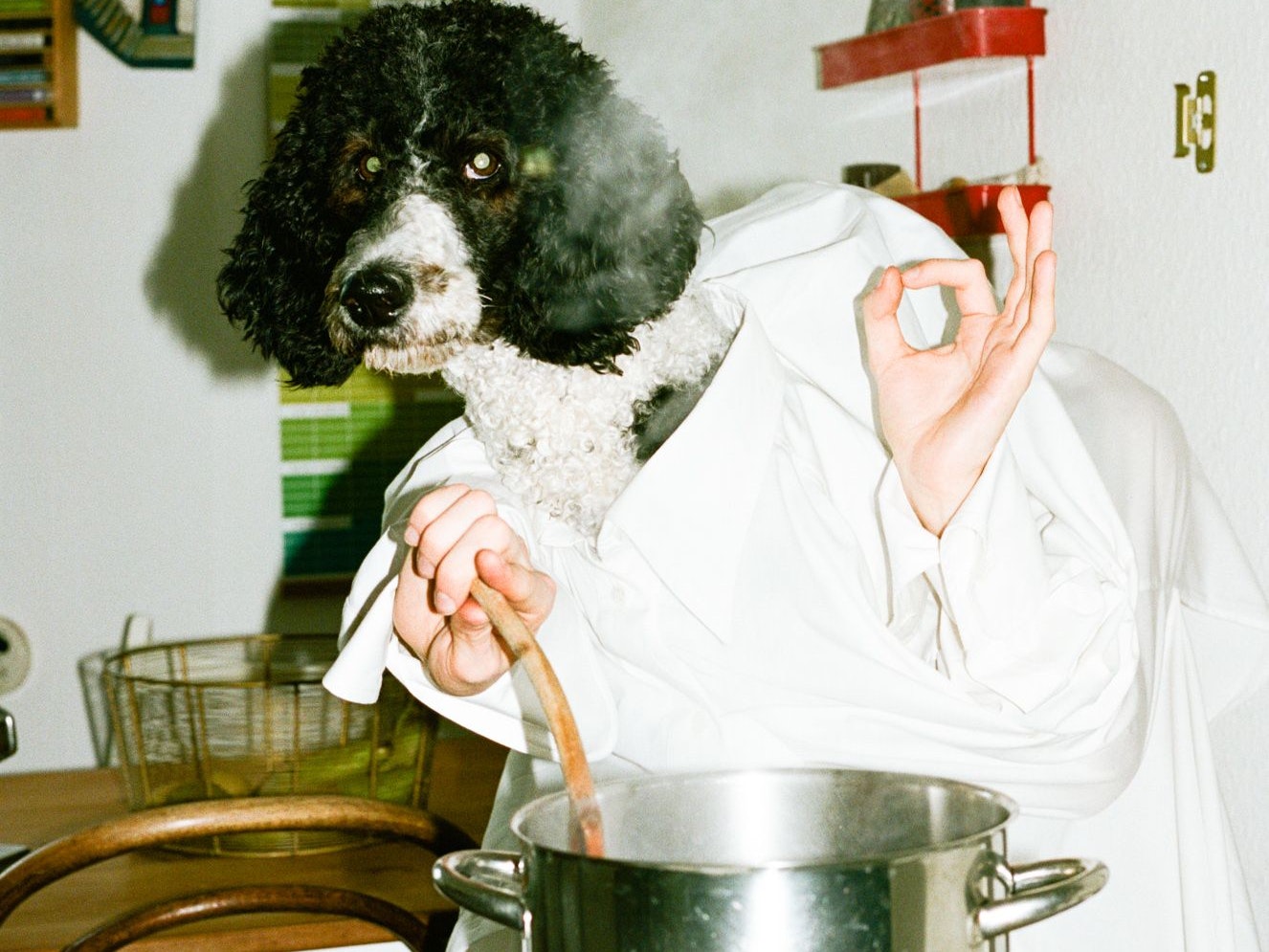 Für seinen Kalender "Doggystyle" lichtete der Wiener Fotograf Daniel Gebhart de Koekkoek zwölf Hunde ab. Hier zu sehen: Bertha, die ihre Suppe würzt.