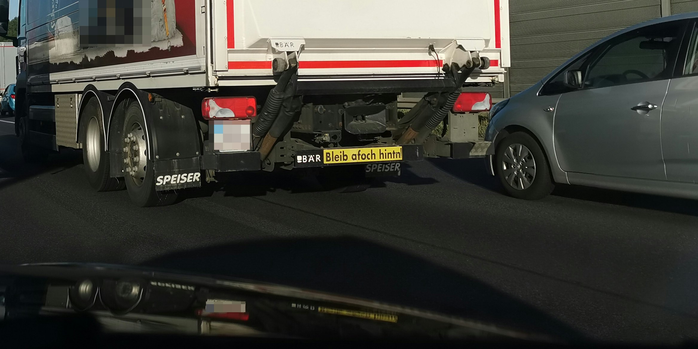 Dieser Lkw hat eine weise Empfehlung für Pkw-Lenker hinter ihm.
