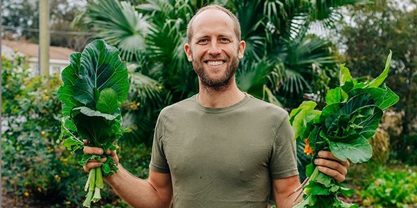 Rob Greenfield (33) in seinem geliehen Garten