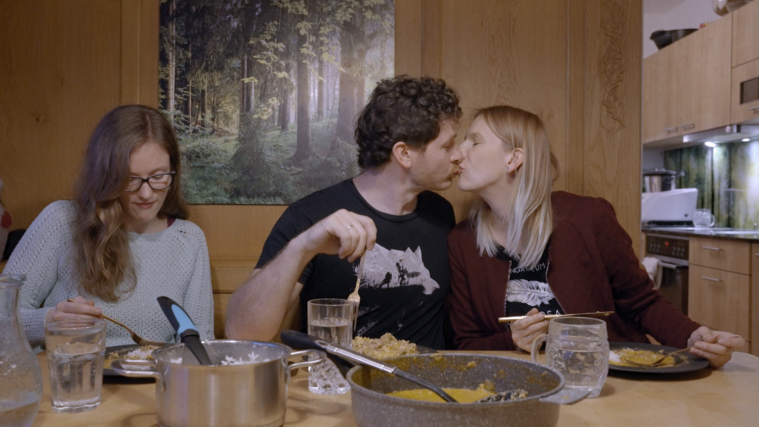 Beim gemeinsamen Familiendinner: Martin mit Ehefrau Verena (re.) und Freundin Eli (li.)