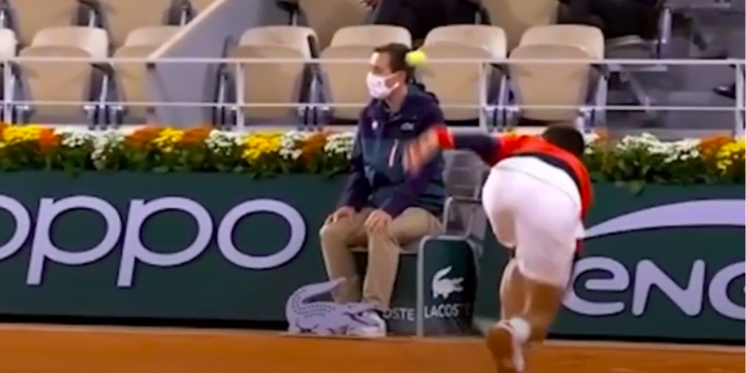 Beim Versuch einen Aufschlag zu retournieren trifft Djokovic unglücklich einen Linienrichter.