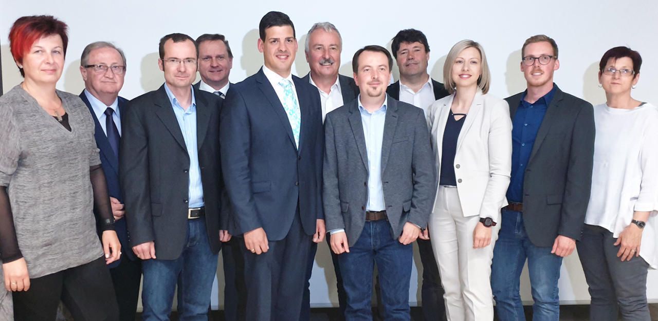Neue Gemeindespitze in Wolkersdorf, im Bild v.l.: Andrea Stöger-Wastell (ÖVP), Josef Siebenhandl (ÖVP), Martin Stöckl (ÖVP), Hermann Stich (TEAM Wolkersdorf), Bürgermeister Ing. Dominic Litzka (TEAM Wolkersdorf), Christian Schrefl (WUI-die Grünen), Vizebürgermeister Mag. Albert Bors (SPÖ), Gottfried Hirschbüchler (ÖVP), Isabell Duscher (TEAM Wolkersdorf), Ing. Stefan Streicher (MIT:uns) und Gabi Grames (ÖVP).
