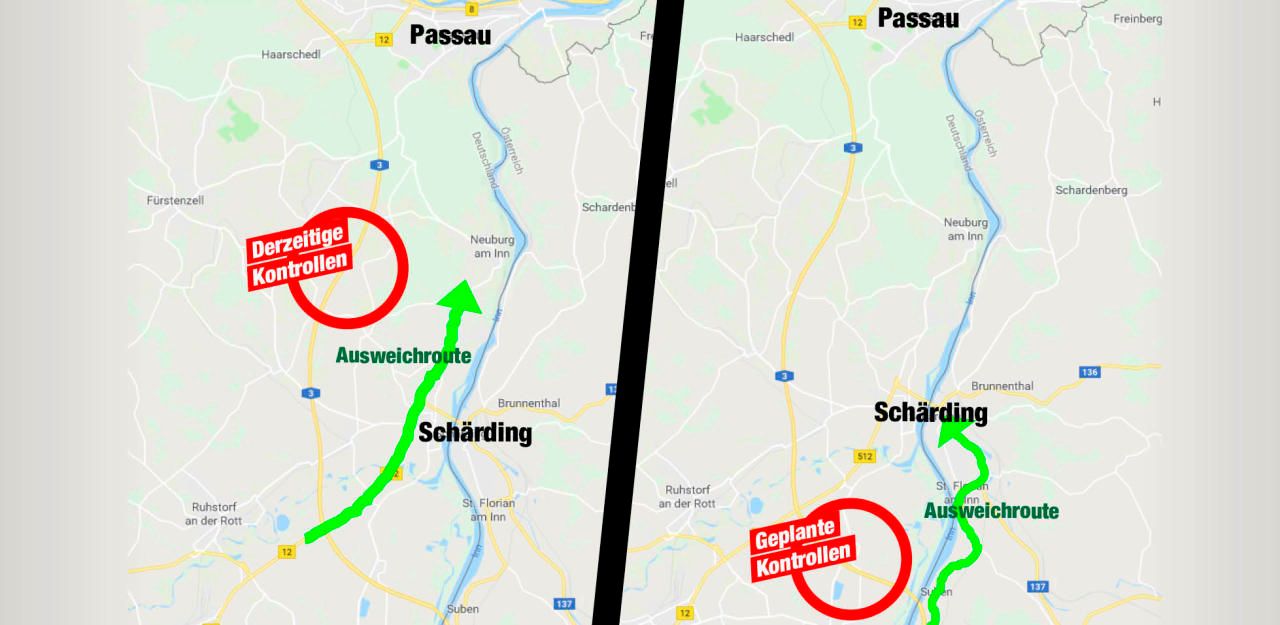 Derzeit sorgen die Kontrollen auf der A3 in Deutschland für lange Wartezeiten. Diese Kontrollen könnten nun nach Süden, näher an die Grenze zu Österreich verlegt werden. Der Ausweichverkehr könnte dann über Schärding nach Passau gehen.