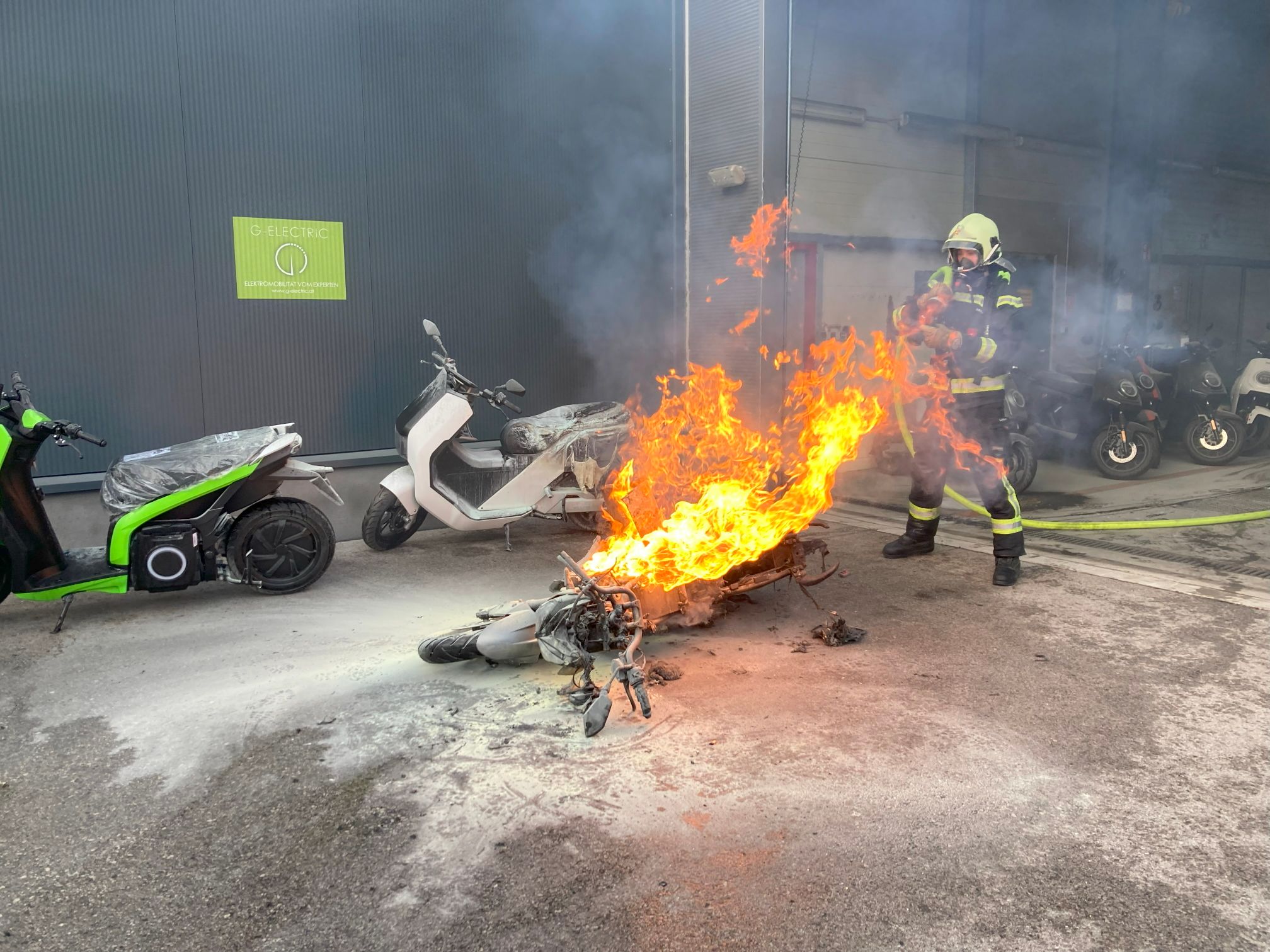 Der Elektro-Roller ging beim Ladevorgang in Flammen auf.