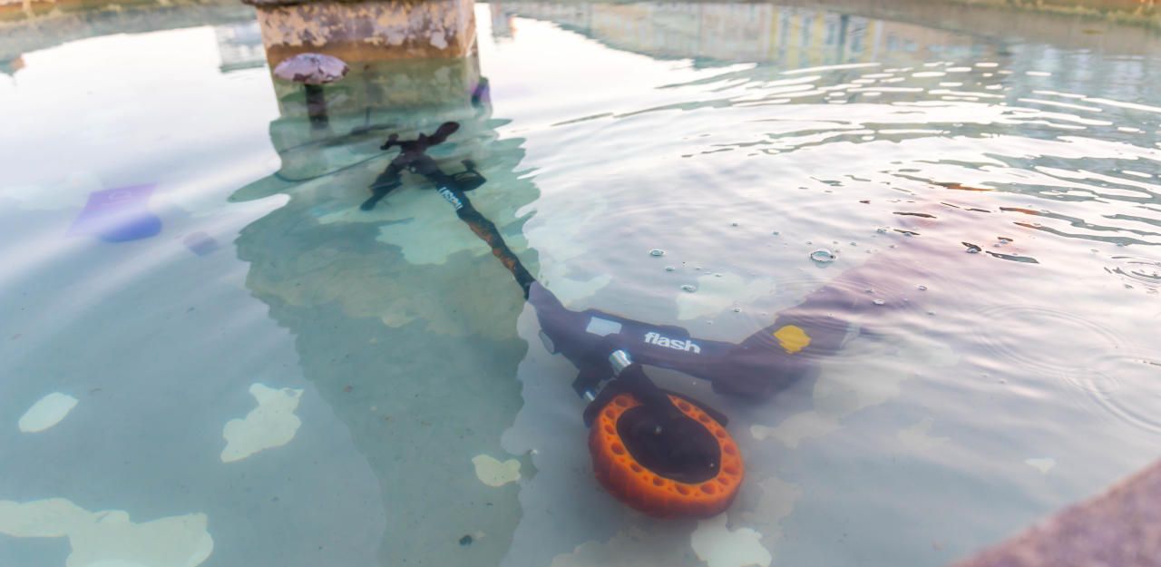Dieser E-Scooter wurde nach der Fahrt einfach im Brunnen am Linzer Hauptplatz versenkt.