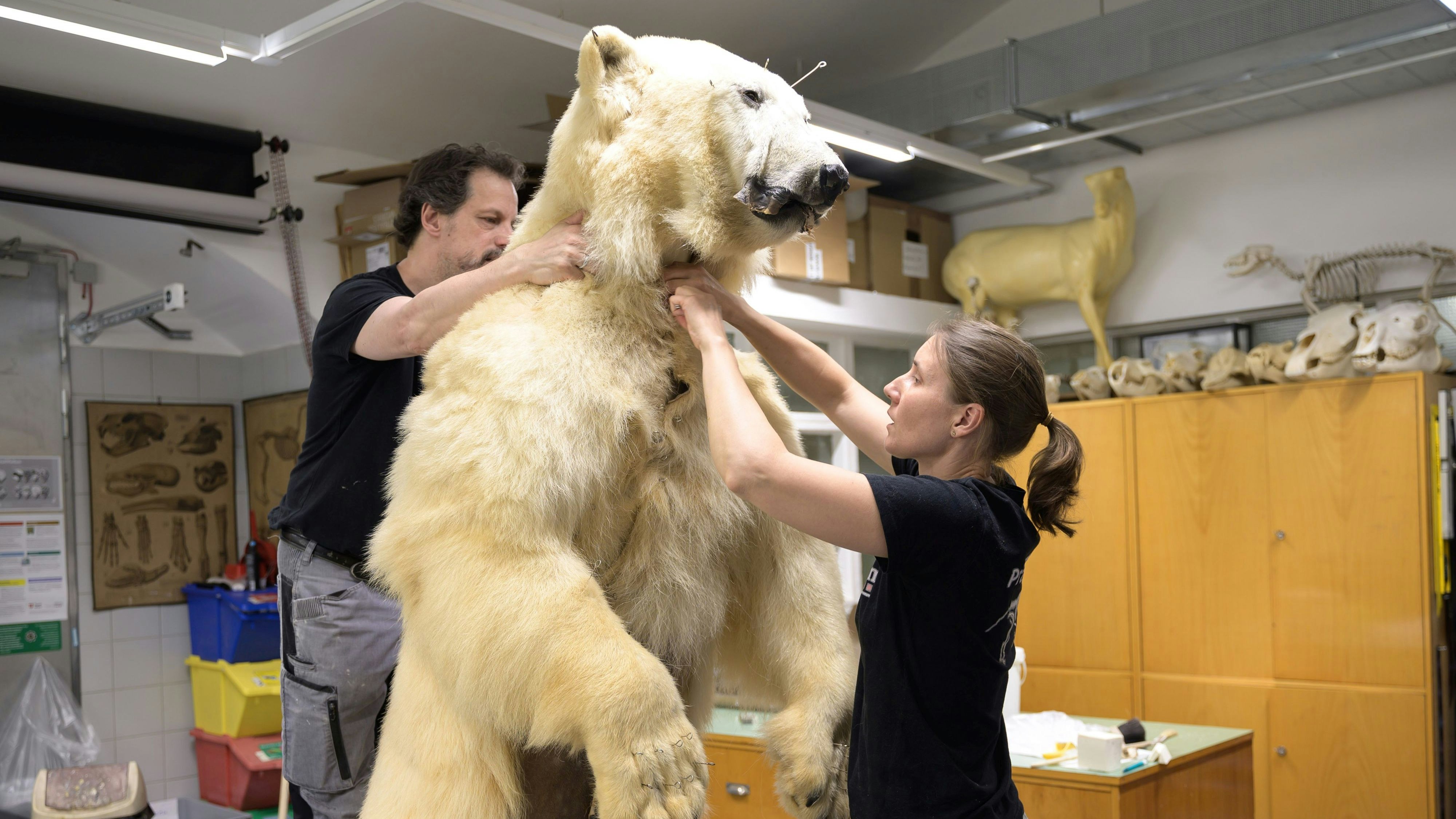 Die Präparatoren beim "Making of" des Eisbären-Modells.