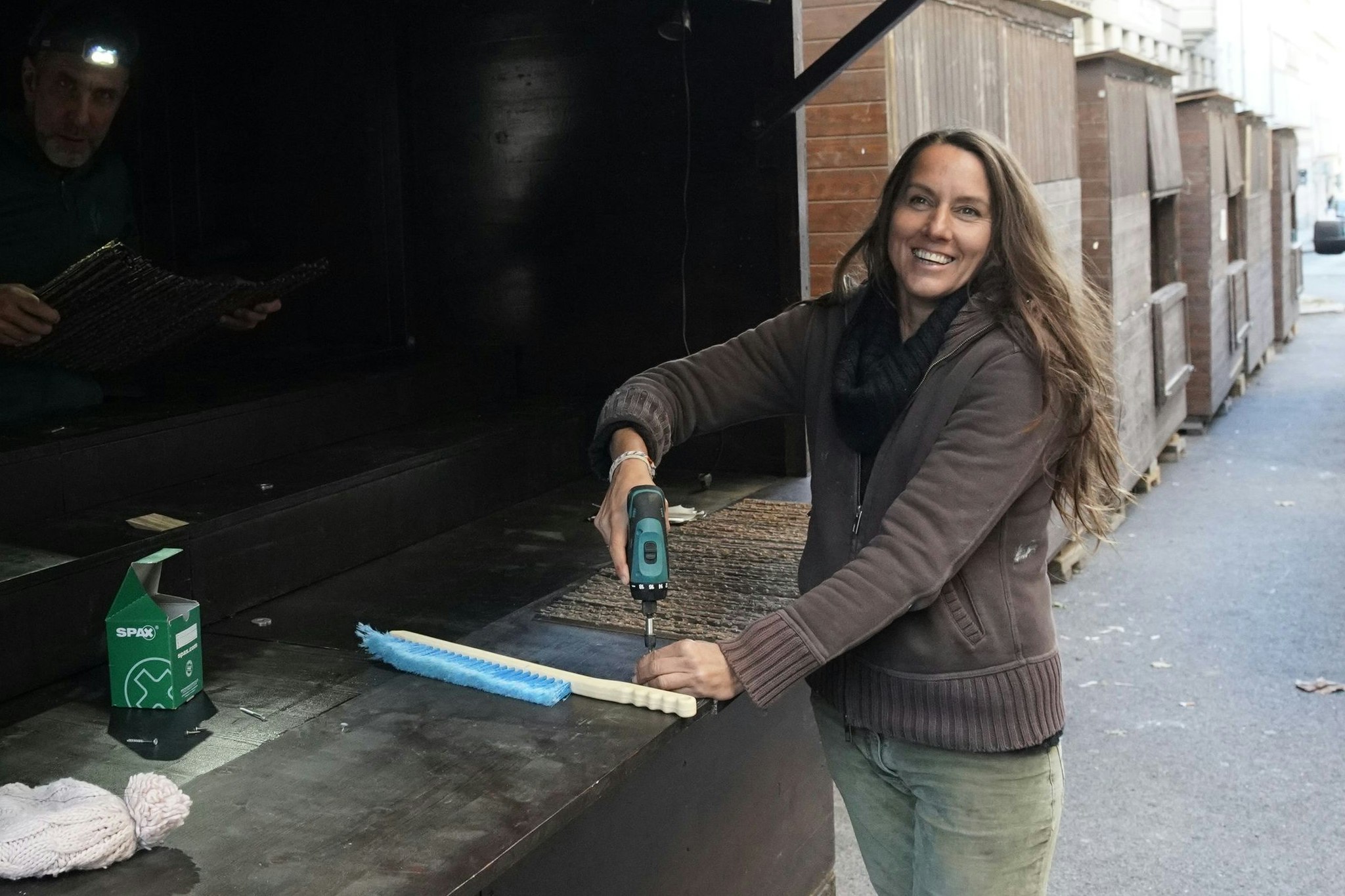 Annie (48) werkt bereits fleißig an ihrem Stand am Weihnachtsmarkt am Spittelberg. Am Freitag geht es am größten Markt Wiens mit dem Weihnachtsgeschäft los.