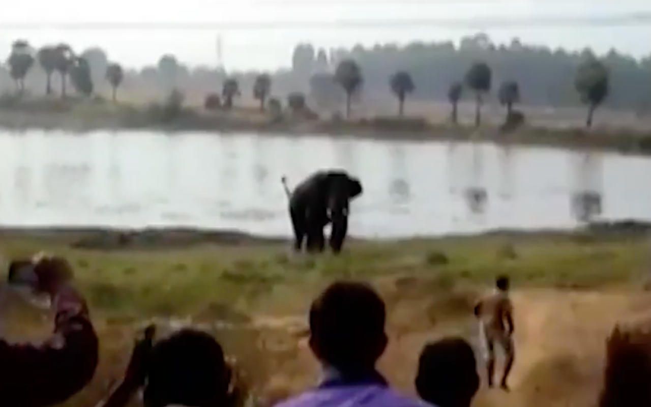 Die anderen Bauer versuchen, den Elefanten noch mit Steinen und Feuerwerks-Knallern zu verjagen, aber es ist zu spät. Das Tier hat einen Landwirt totgetrampelt.
