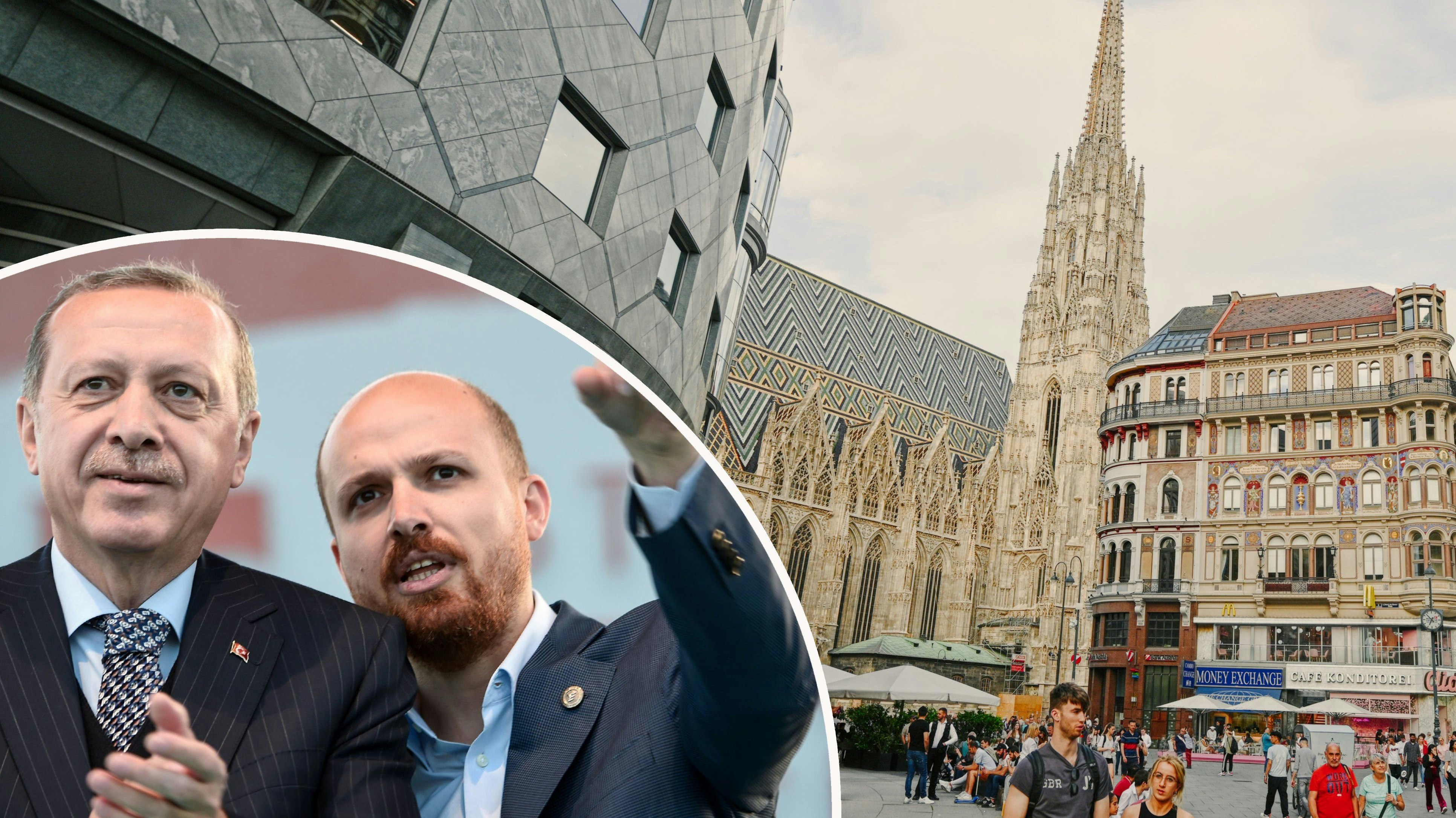 Bilal Erdoğan (r.), Sohn des türkischen Präsidenten Recep Tayyip Erdoğan (l), trat am 10. März bei einem Iftar eines Erdoğan-nahen Vereins in Wien auf. Der Präsidentensohn gilt in politischen Beobachterkreisen als möglicher Wunschnachfolger seines Vaters.