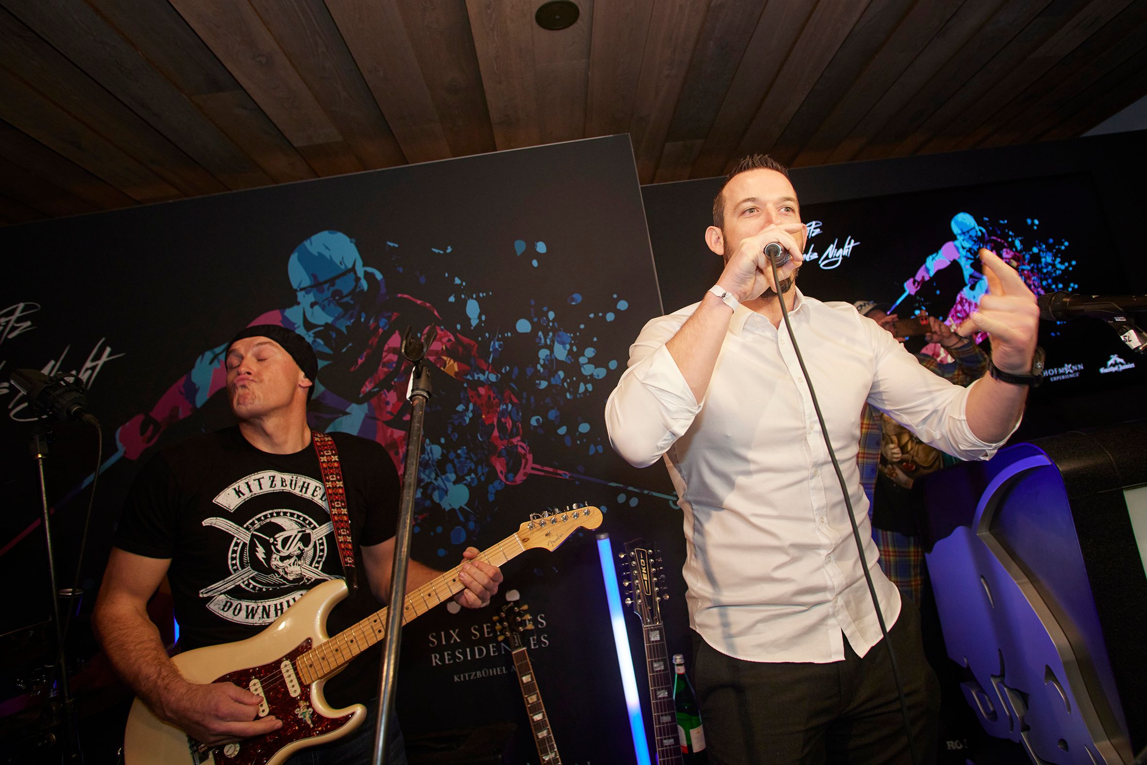 Ski-Legende Ivica Kostelic an der Gitarre, Speed-Ass Dominic Paris am Mikrofon.