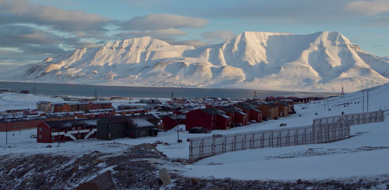 Longyearbyen ist die größte Siedlung auf Spitzbergen. Im Hintergrund die Berge Plataafjellet und Hjortfjellet.