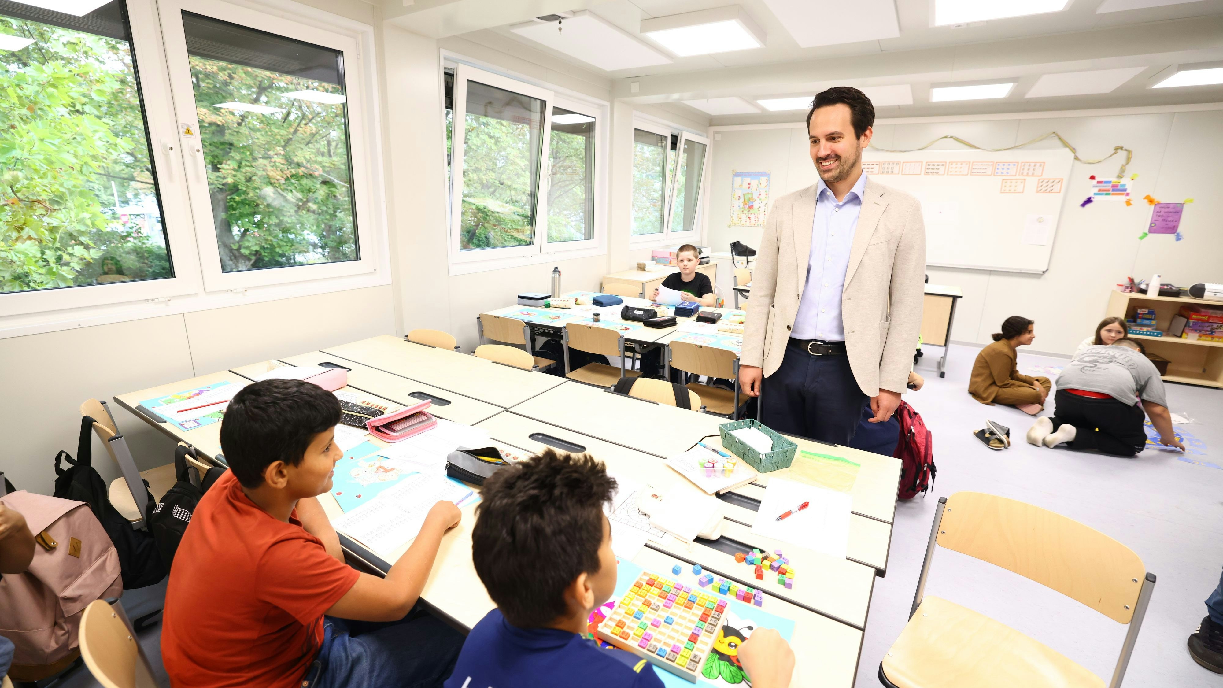 Vizebürgermeister Christoph Wiederkehr besuchte Containerklasse in Wien-Favoriten.
