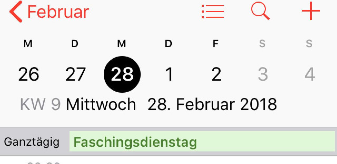Der Faschingsdienstag ist tatsächlich ganztägig, aber sicher nicht am 23. Februar.