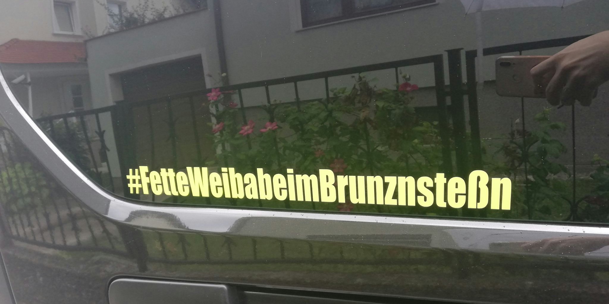 Der Sticker klebt auf dem Privatauto eines Mitarbeiters der Wiener Berufsrettung.