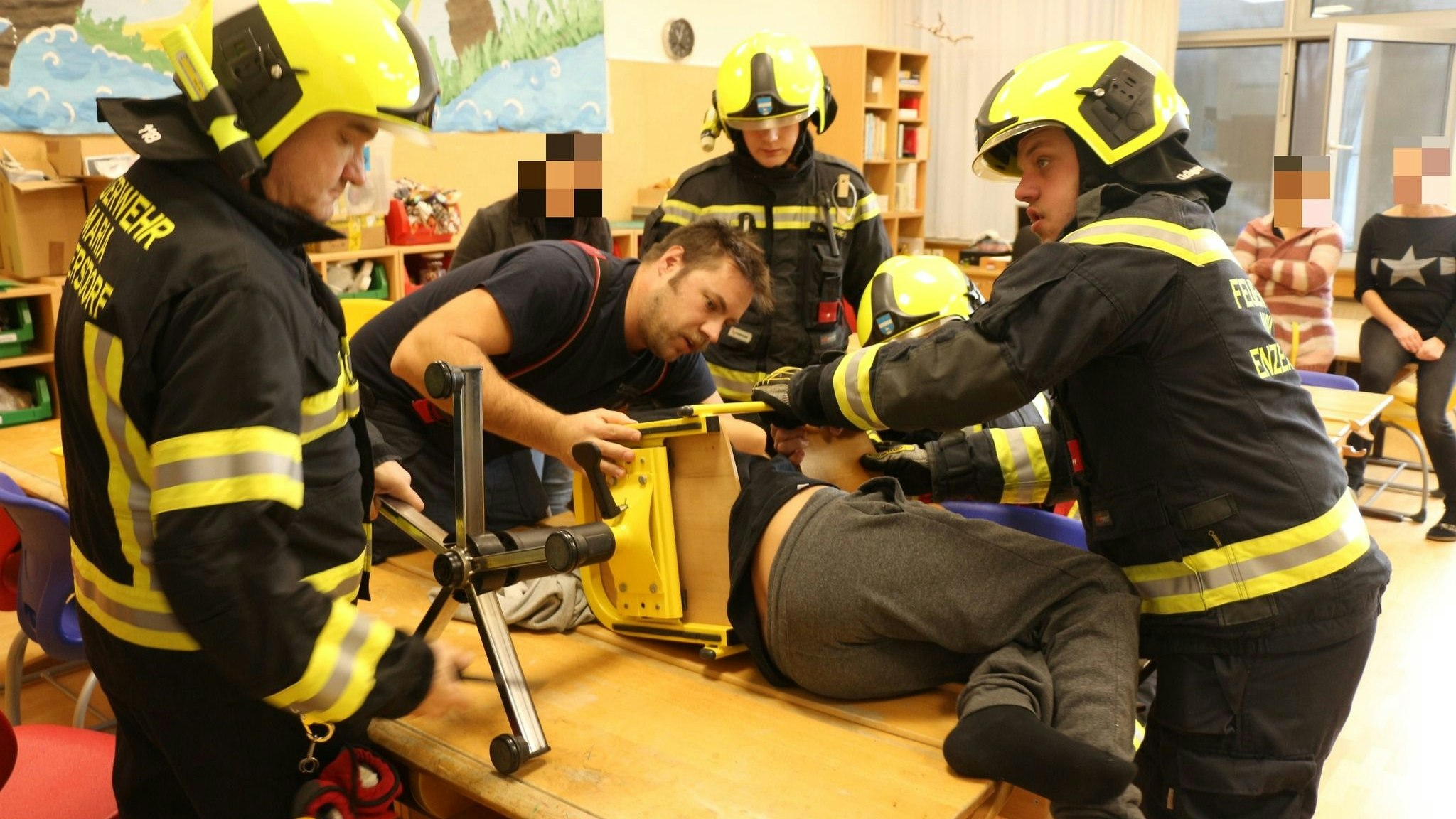 Aus einem Spaß wurde Ernst. Das Kind blieb mit dem Oberkörper stecken.