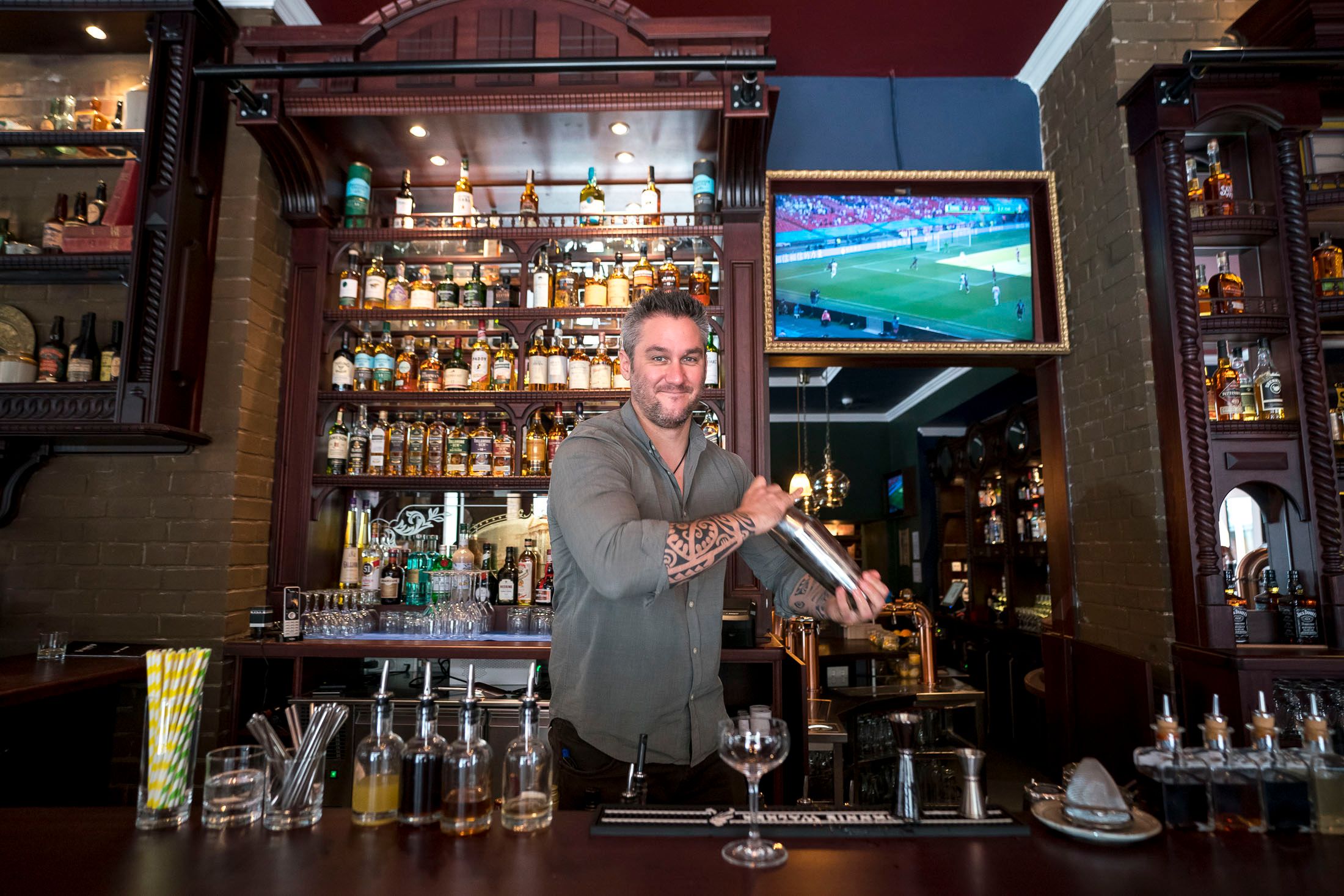 Barkeeper Gregory J. Buda mixt einen Irish Whiskey Sour.