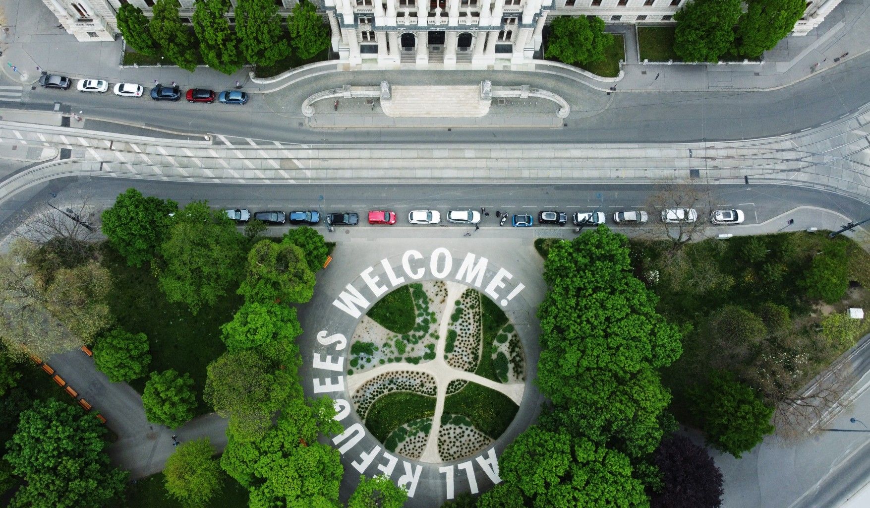 Klare Message: Über Nacht brachten Aktivisten der Links-Partei den Schriftzug "All Refugees Welcome" vor dem Justizpalast an.