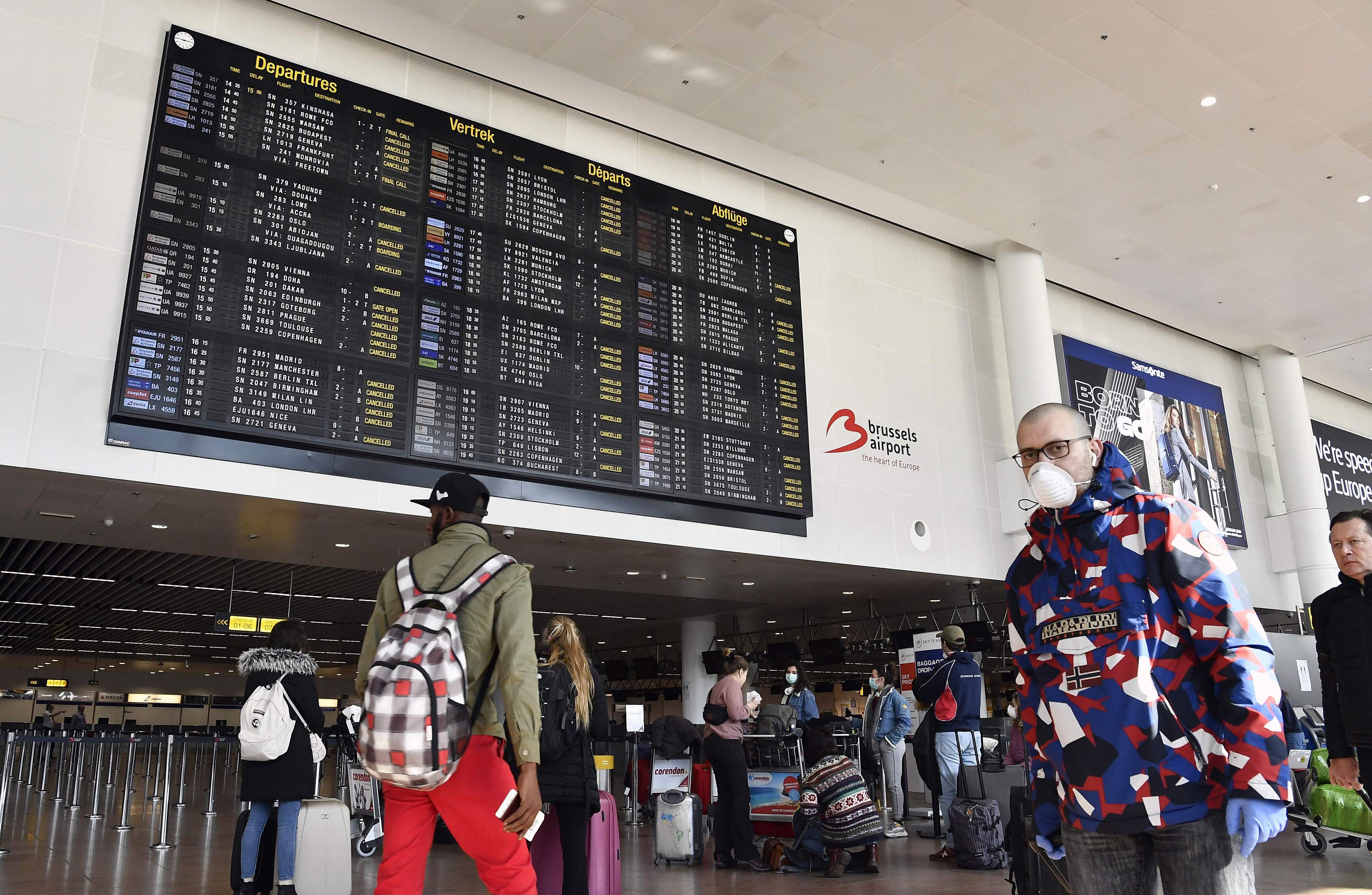 Reisende zu Corona-Zeiten am Brüsseler Flughafen.
